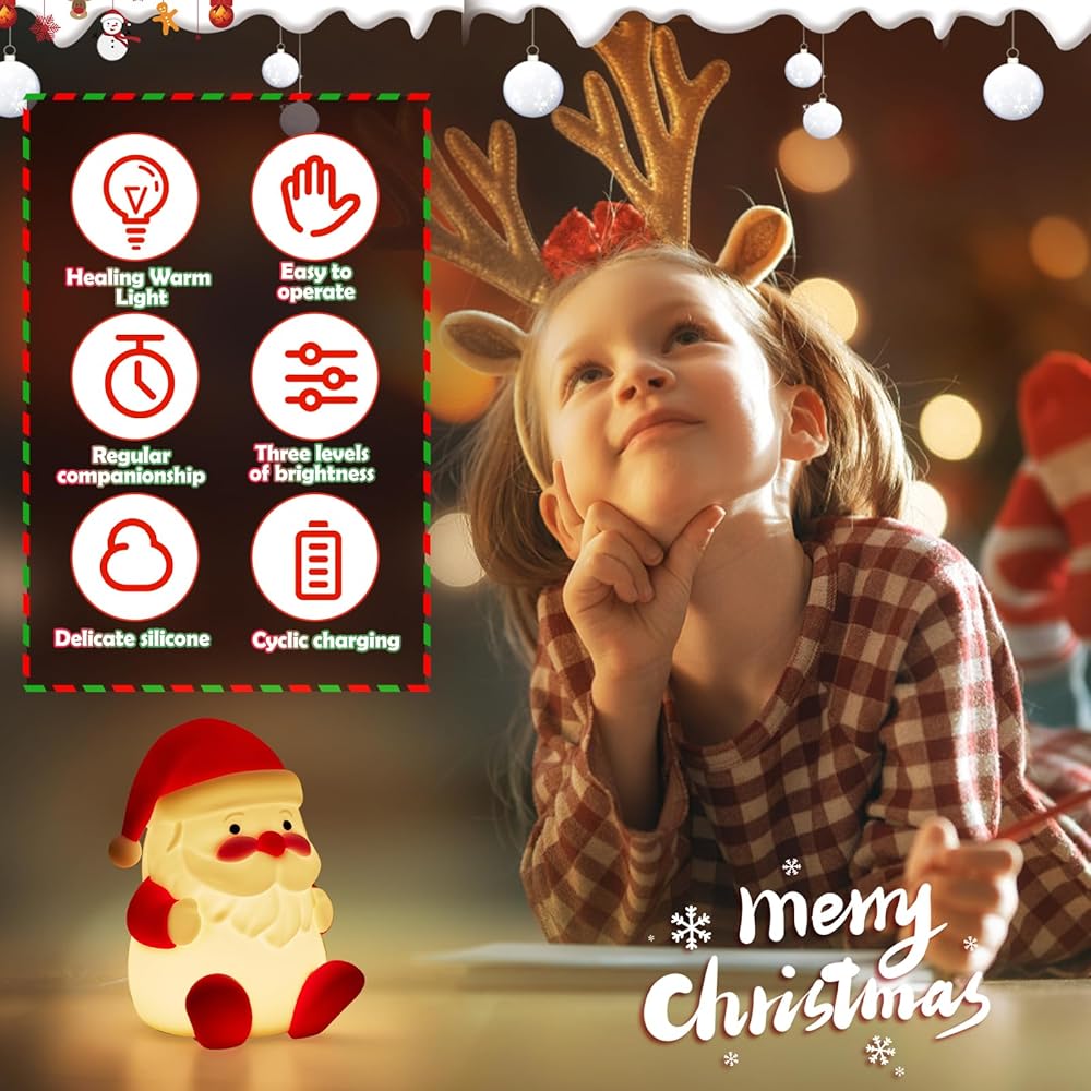 Cute Night Light for Kids, 3 Level Dimmable Bedside Touch Lamp, Silicone Bedside Lamp for Baby and Toddler for Boys, Girls and Children, Christmas Decorations, Cute Gifts