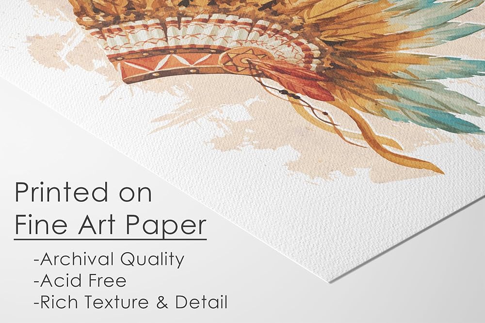 🎨【STUNNING ARTISTRY】Adorn your space with this captivating Native American headdress wall art print. Its intricate design and vibrant colors will add a touch of culture and elegance to any room. Perfect for adding personality to your home decor!