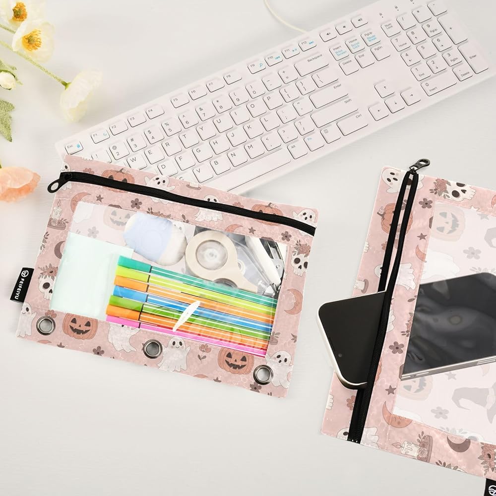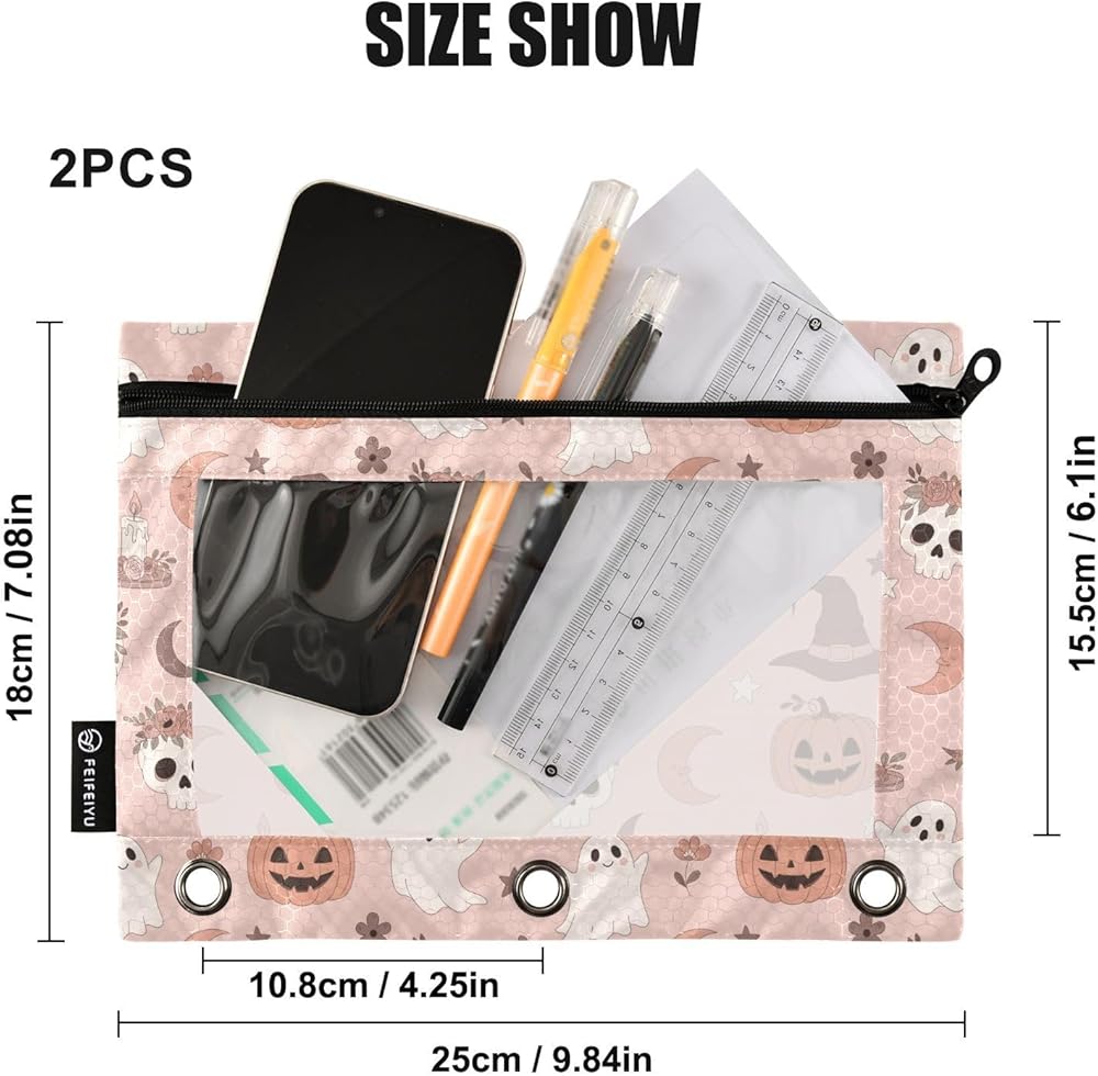 The front of each pouch is covered with clear plastic, allowing you to easily see what's inside and find items quickly. The three-hole loose-leaf design fits standard 3-ring binders, with 3 rivet enforced holes that strengthen the pouch. Holes also allow you to secure the pouch to another item using a fastener or clasp.