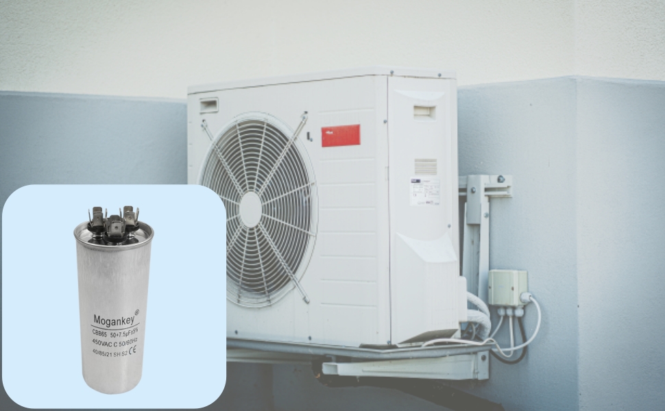 50+7.5 MFD uF CBB65 Capacitor Withstand 450V AC Compatible with Air Conditioner Capacitor Round Dural Motor Run Capacitor Air Compressor Water Pump Motor