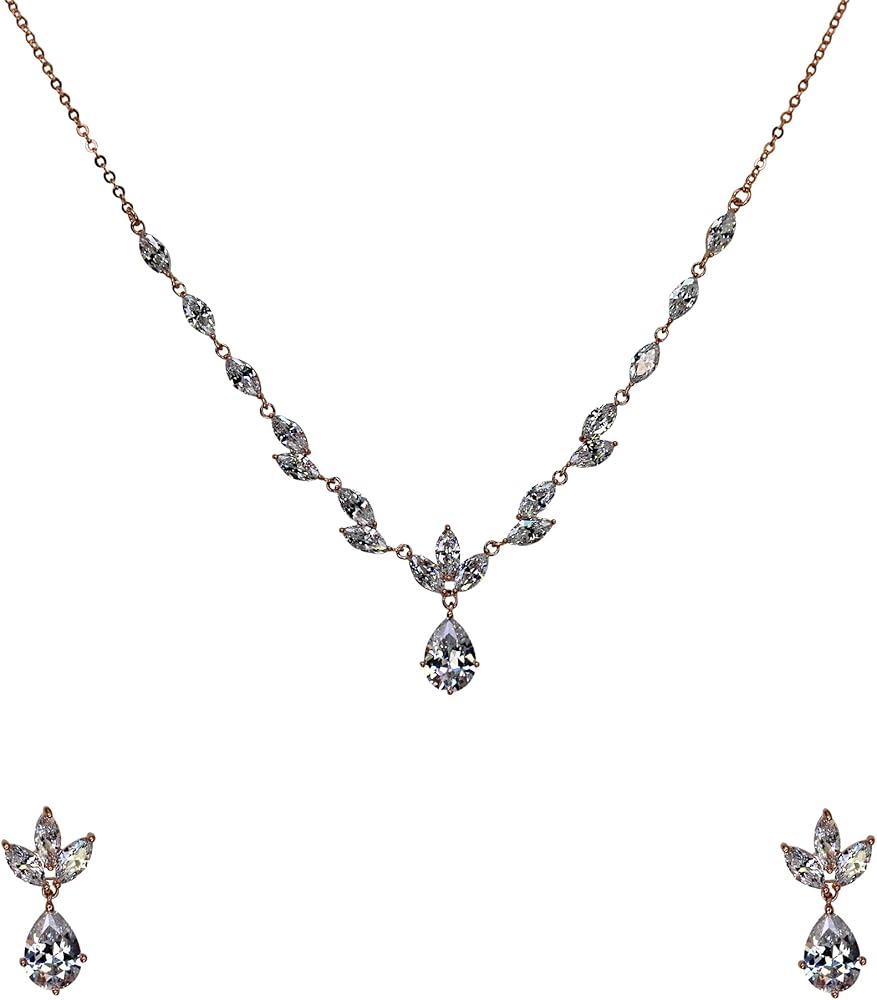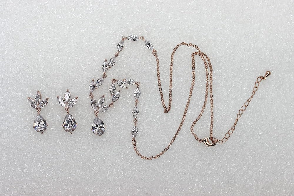 Up for sale is this gorgeous floral necklace and earrings set with sparkling teardrop and marquise CZ crystals. Good for Bridal, bridesmaid, wedding party, prom, Mothers day, Valentines day, anniversary, birthday Party, Prom, Christmas holiday or any special occasion!
