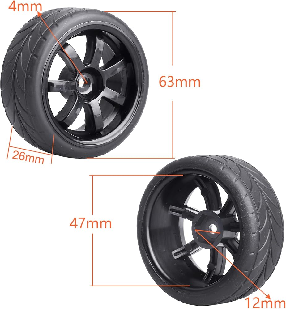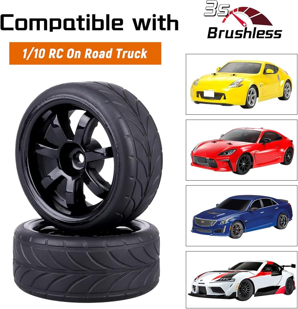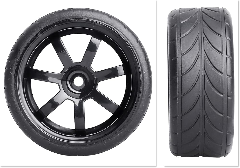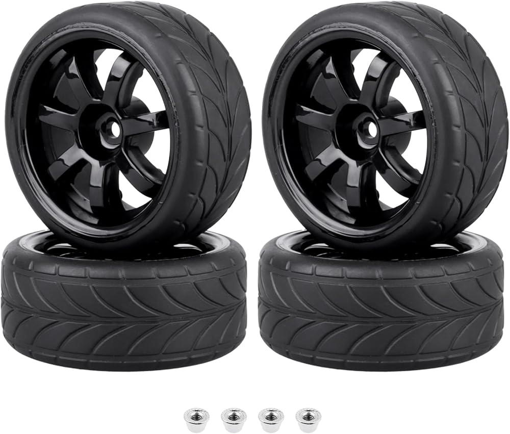 Pre-Glued RC Touring Tires and Wheels Set for 1/18 Traxxas Latrax Teton 1/10 On-Road 4-Tec 2.0 3.0 Tamiya TT02 TT01, Set of 4 (Type 1)