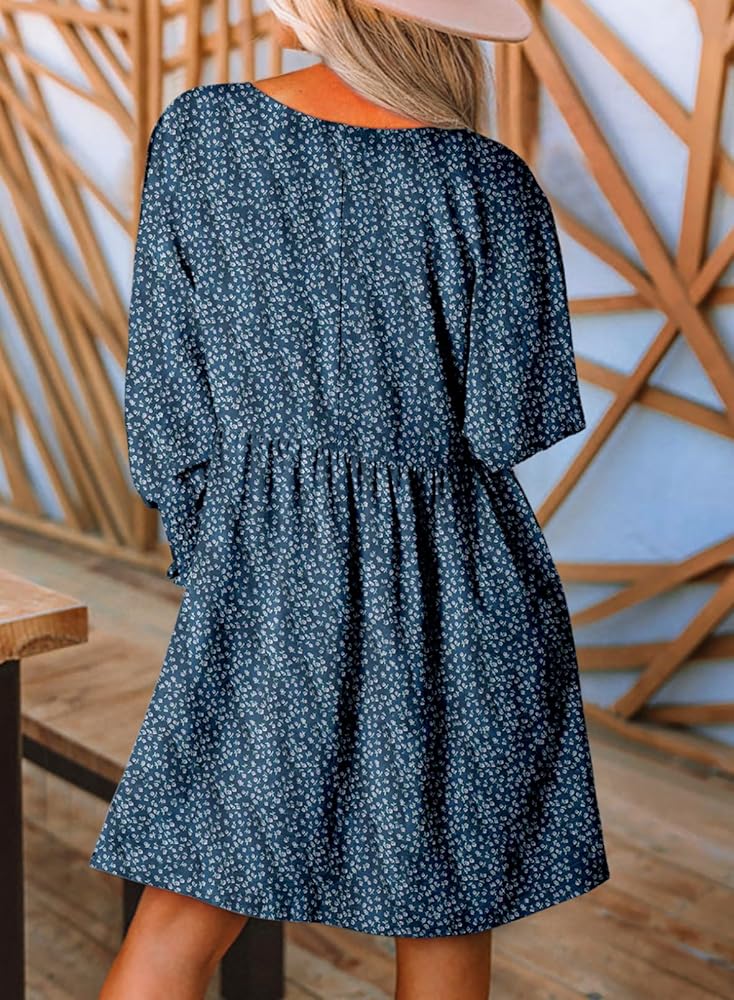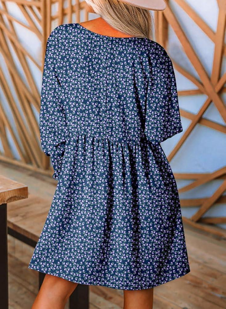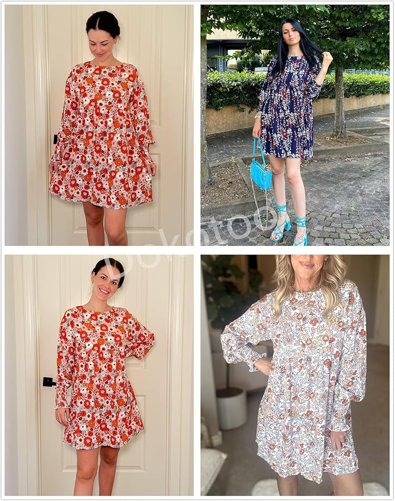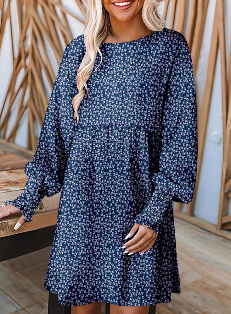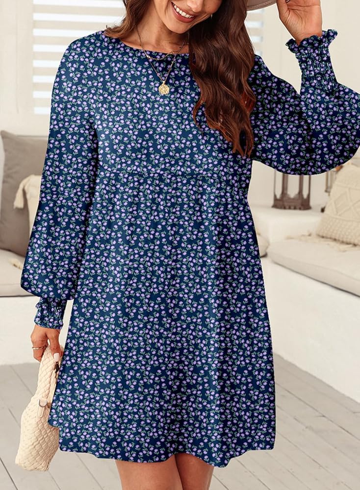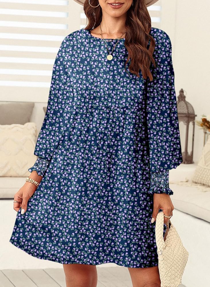 Women sundresses are featuring casual crew neck,loose fit flowy style,classic floral print,long sleeve with smocked detail,which make the dress be adorable on you.