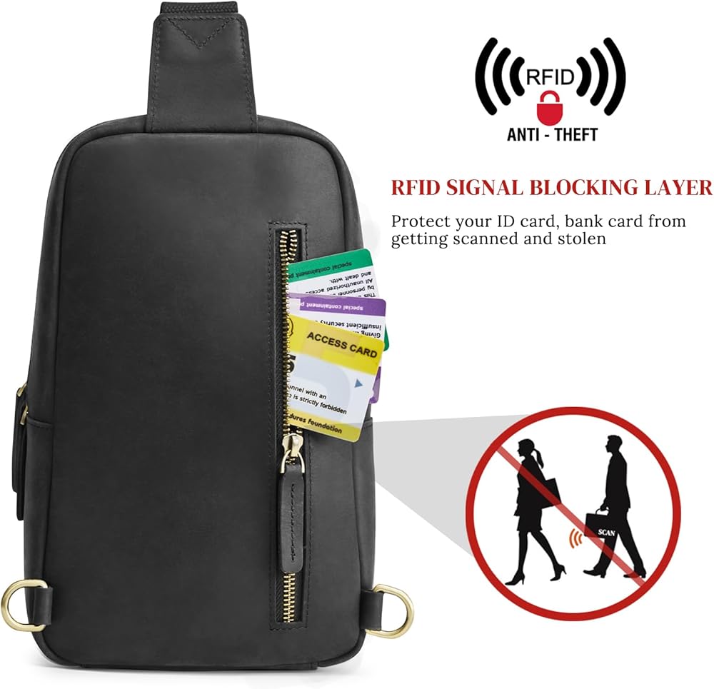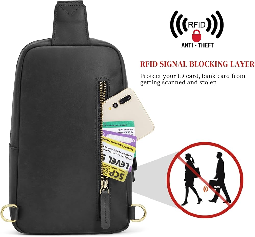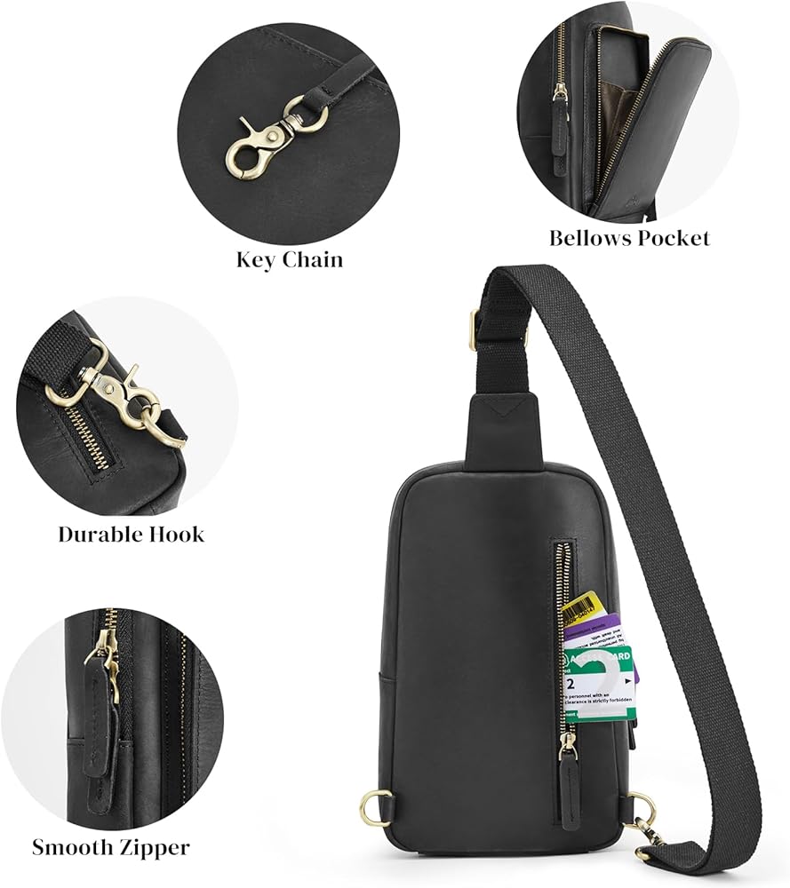 LEATHER SLING BAG: This sling bag is crafted from Top Grain Leather with vintage effect. It features exquisite hardware and reinforced stitching, ensuring durability and timeless, fashionable elegance