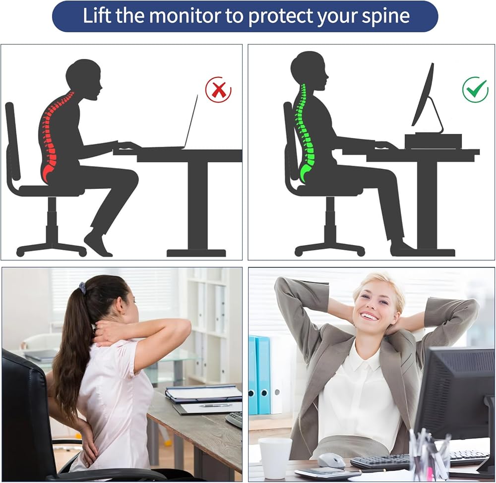 【تصميم مريح يرفع】منظم الكمبيوتر إلى مستوى العينين، مما يوفر تجربة مشاهدة مريحة لضمان زاوية رؤية مثالية وتقليل الضغط على الرقبة والعينين. استمتع براحة أعلى وكفاءة عمل أثناء ساعات العمل الطويلة أو اللعب.