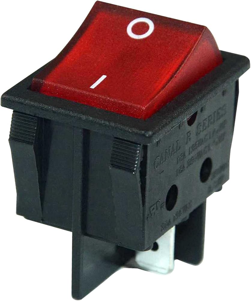 -- Snaps conveniently into appliance, contains red translucent rocker lamp, quick connect terminals, and constructed of plastic housing material.