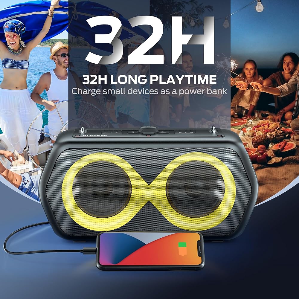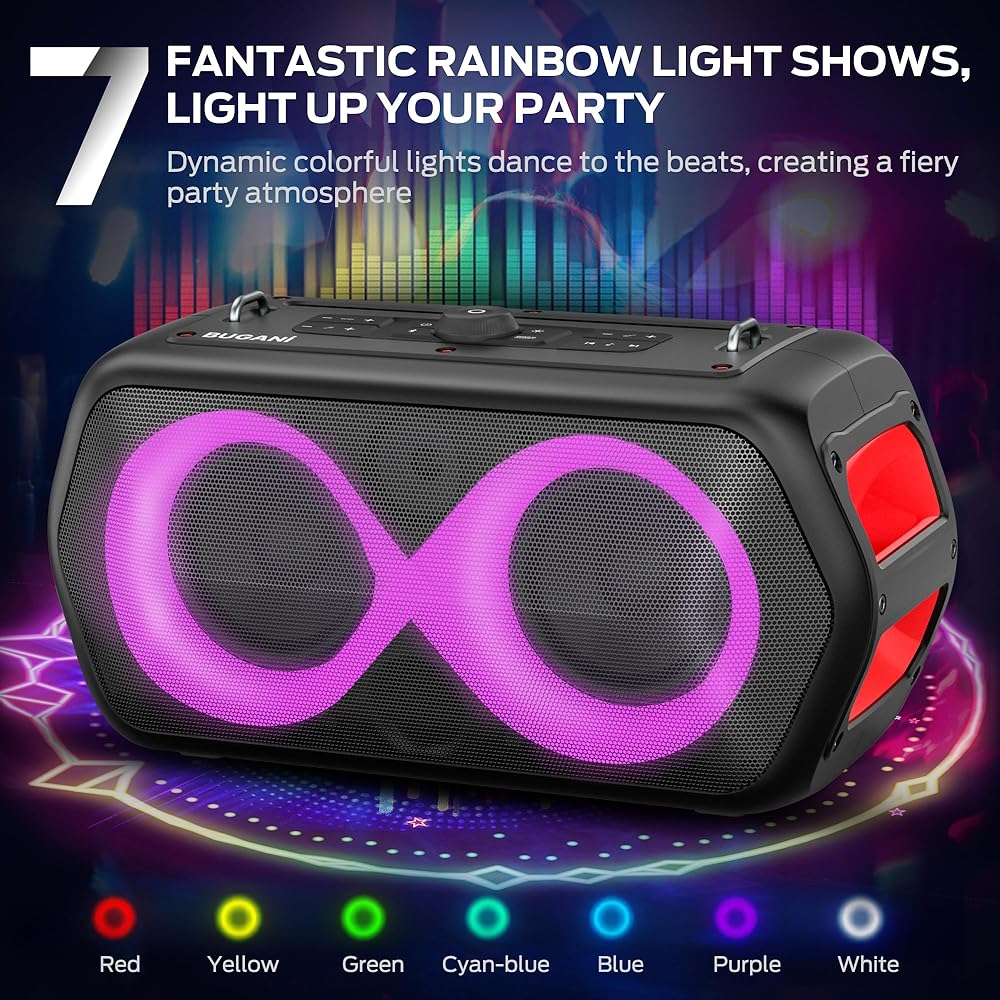 BUGANI Bluetooth Speaker,120W Peak High Power Outdoor Speakers Loud Party Speaker Large Portable Waterproof Bluetooth Speakers with 7 Lighting Effects, Subwoofer/Deep Bass/DSP/Stereo Pairing/EQ/32H