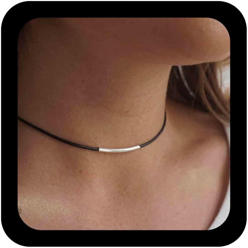 -Punk black leather collar choker necklace short cord chain necklace Vintage Necklace Boho necklace Jewelry bridesmaid gifts Women necklaces Custom gifts Bohemia Necklace