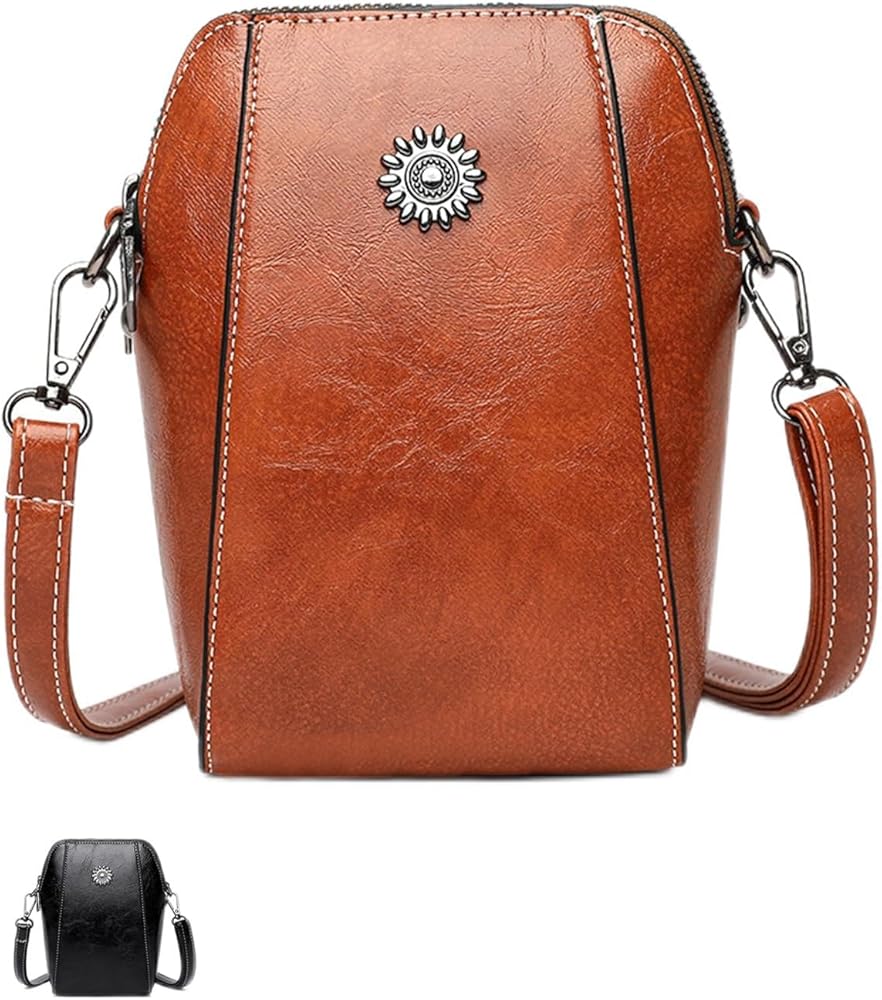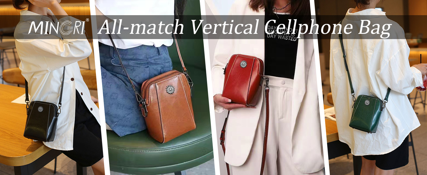 【Retro Vertical Cellphone Bag】Cross body handbag with 2 main pockets and 1 inner zipper pocket, interior size could better fit most cell phones (With Slim Case) Not larger than 6.7 inches,which is suitable for most mobile phones on the market.And women's small crossbody bags are easy to clean, just wipe them down.