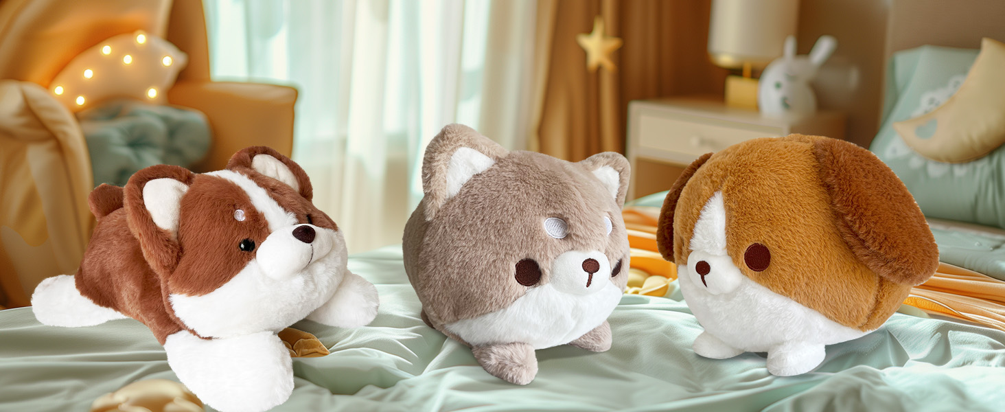 Stuffed dog plushies are not only a good companion for children, but also can adapt to different indoor scenes. For example, it can be used as a decorative throw pillow to stay on the sofa and make your home more lovely; It also provides great support if you use it as a comforting pillow to lean on for a nap.