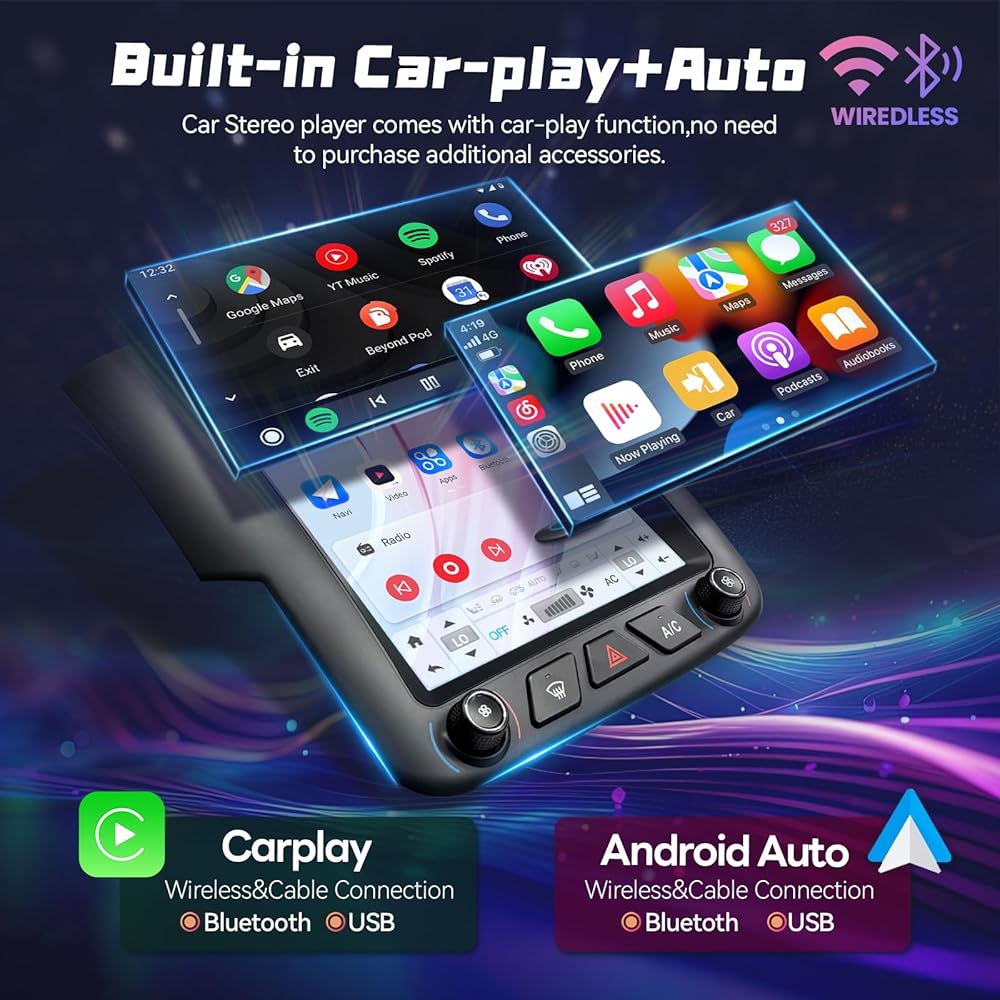 【With Carplay & Android Auto】: Supports wired/wireless carplay and Android auto, You can connect the touch screen radio with smart phone via Bluetooth or USB.most of the cell phone functions can be used on this car radio, such as GPS navigation,play music, send/receive messages, make/answer phone calls, issue voice command and other functions, which makes your driving more convenient and improves your driving safety!