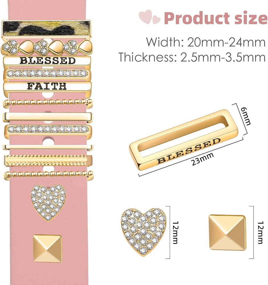 The cute and fashionable design can exude your unique charm, and the rhinestone decoration shows that the watch band charms are even more exquisite. The watch charms have two options for you to choose from wearing a watch strap or not, and the price difference is not significant. The quantity and style are sufficient for your daily use, and can be paired with different clothing and occasions.