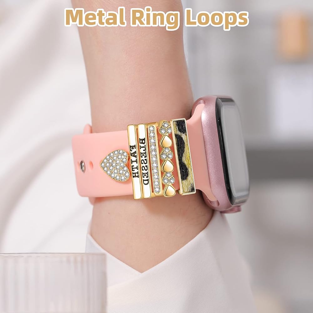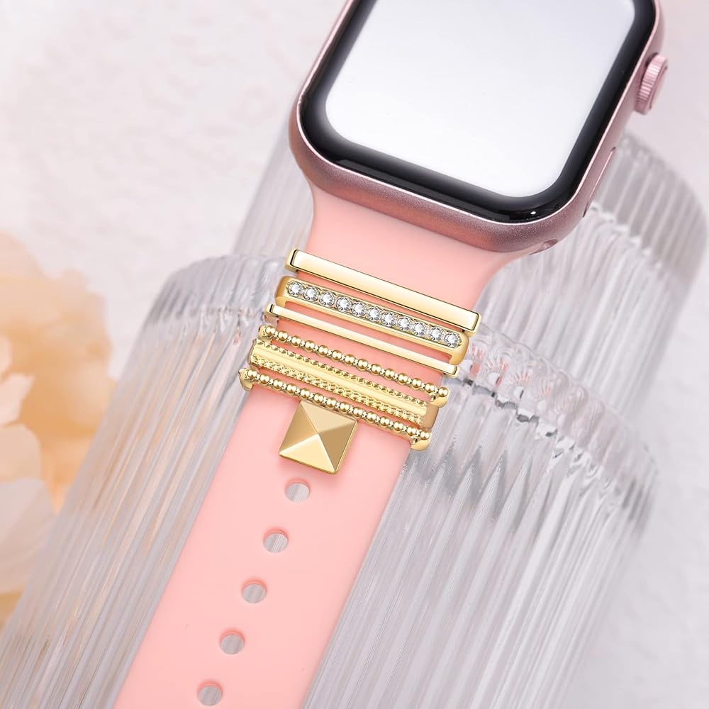 Quality Material: Watchband charms are mainly made of quality alloy with rhinestone, firm and smooth, fine workmanship, safe and durable. It is suitable for round and rectangular holes of silicone strap,The wrist strap looks fashionable and chic under the decoration of iwatch charms.