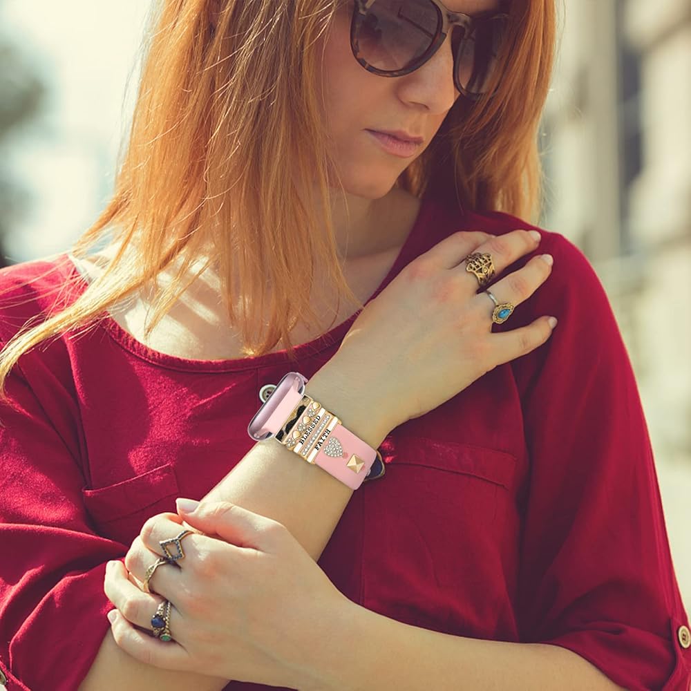 Gift Choice: Decorative female loops are suitable for most people. It's a good choice for your lover, girlfriend, kids, couple or yourself in any gift occasion for Children's Day,Holidays,Valentine's,Mother's Day etc. Give them charm apple smartwatch band, they will love it and don't want to put it down.