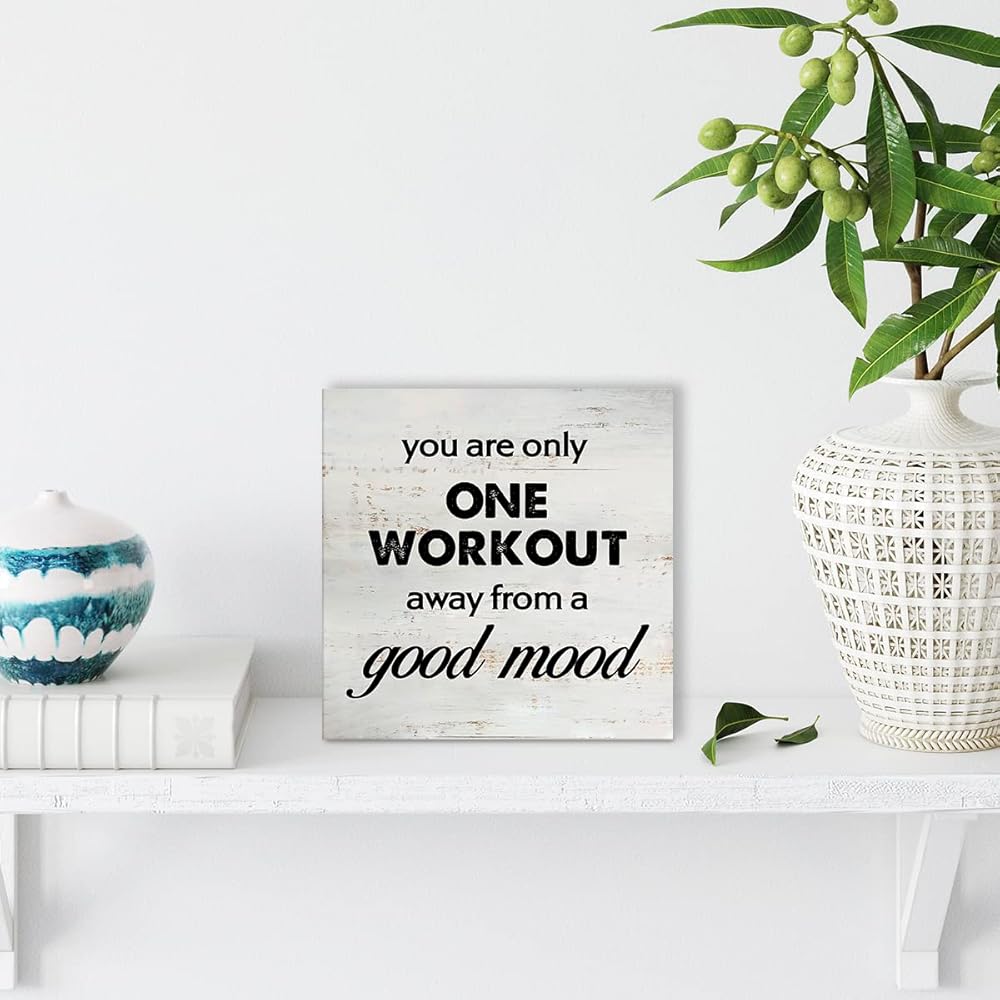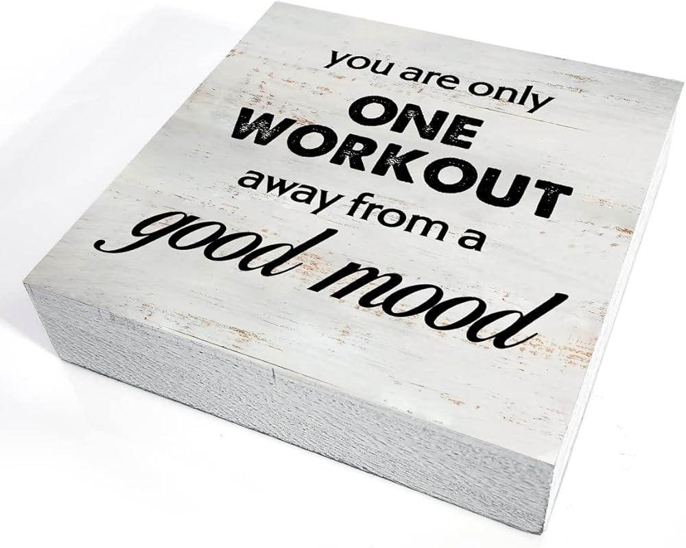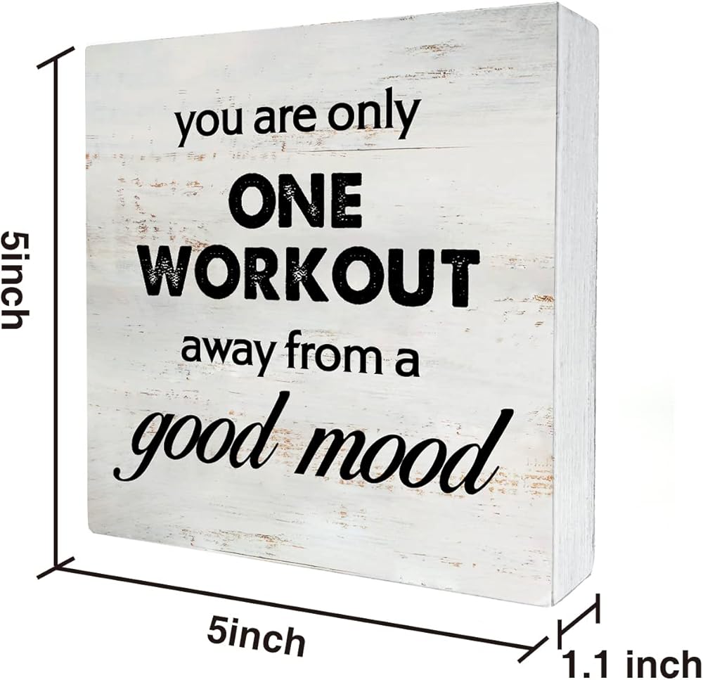 Rustic Good Mood Wood Box Sign Motivational Fitness Wooden Box Sign Farmhouse Home Home Gym Desk Shelf Decor Uplifting Gift (5 X 5 Inch)