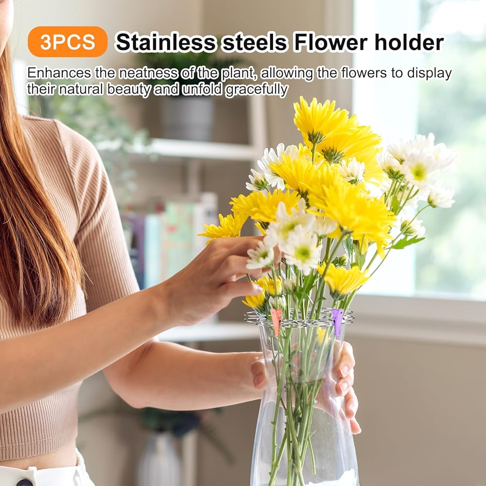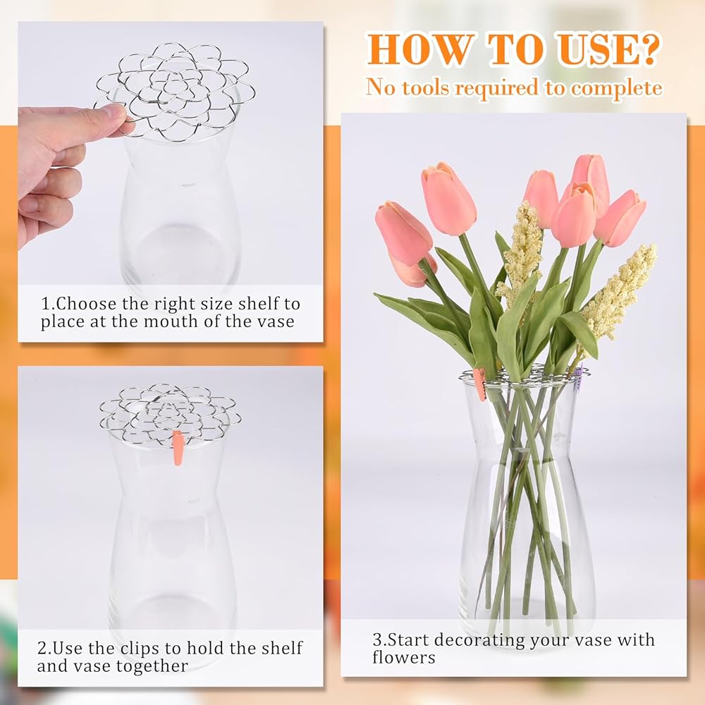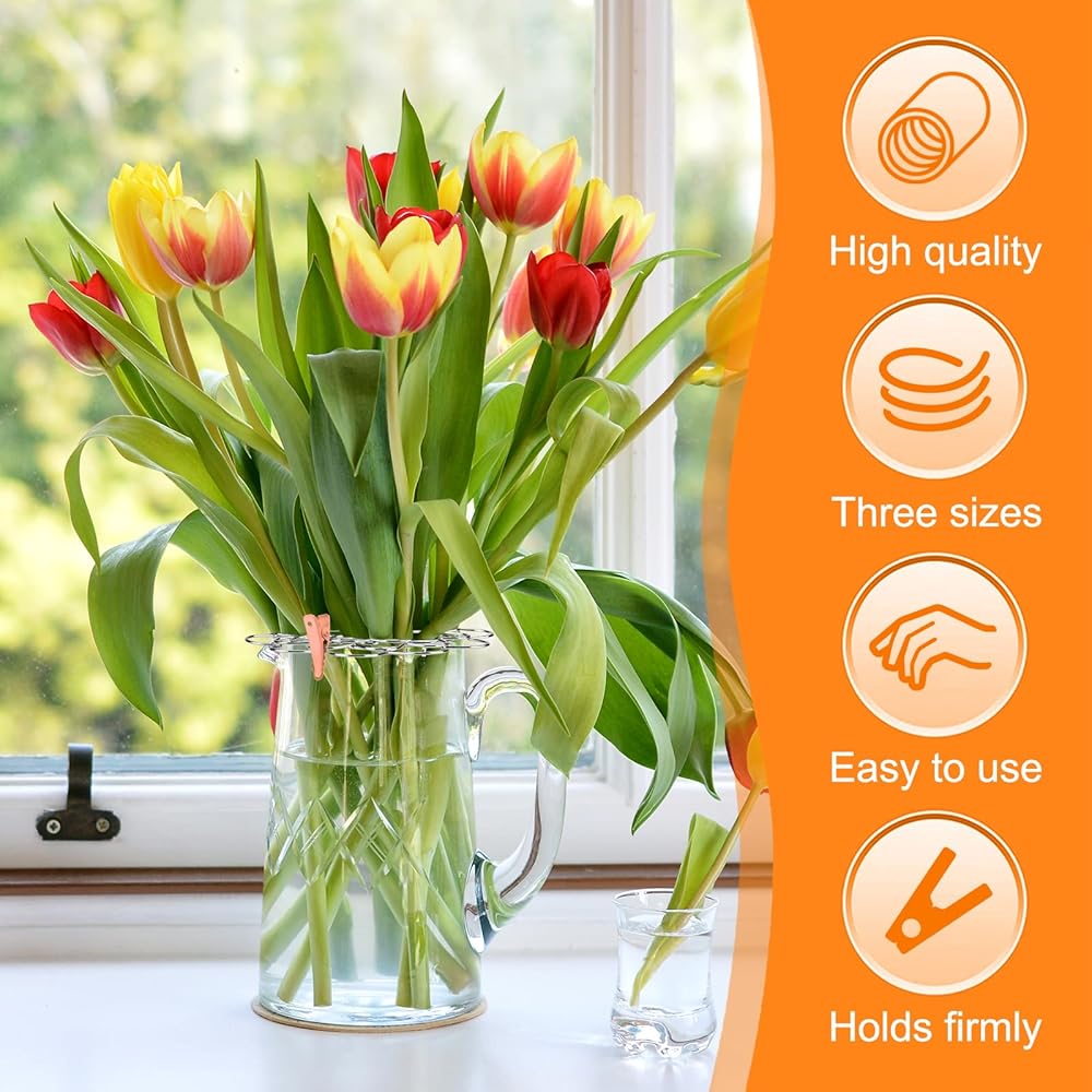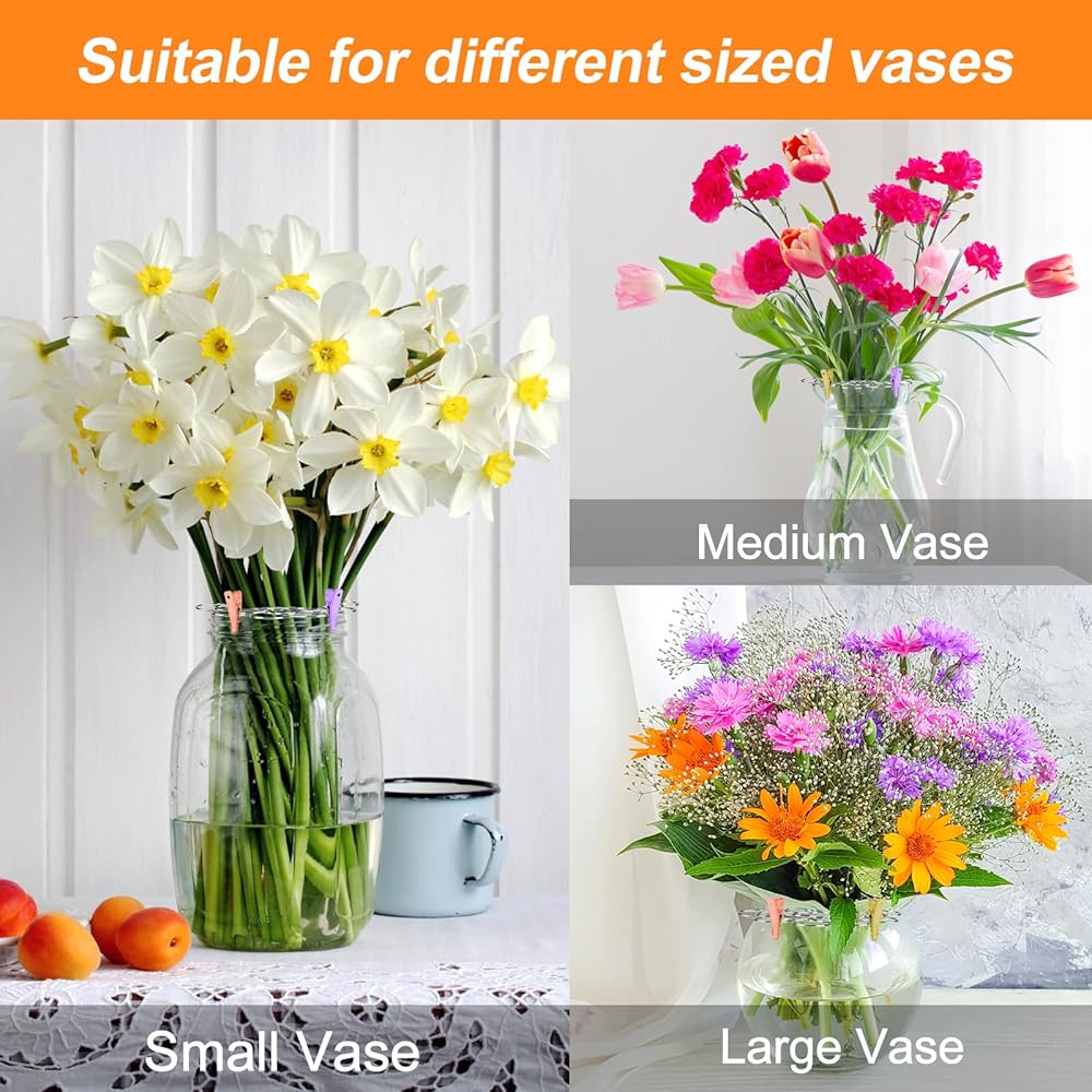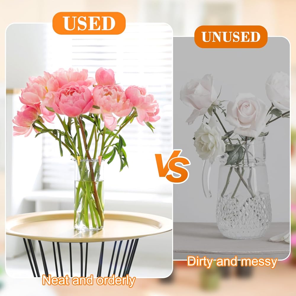 【Wide range of applications】Flower racks can help arrange your flowers more orderly, allowing them to unfold freely. You can also use mini pointed clips to fix the flowers in the position you want, and three different colored clips can enhance the beauty of your vase
