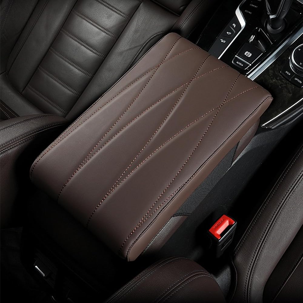 Car Center Console Pad, Universal Leather Waterproof Car Armrest Seat Box Cover, Memory Foam Auto Armrest Cover, Arm Rest Cushion Pads for Most Car/SUV/Truck (Coffee)