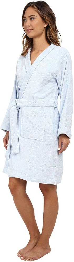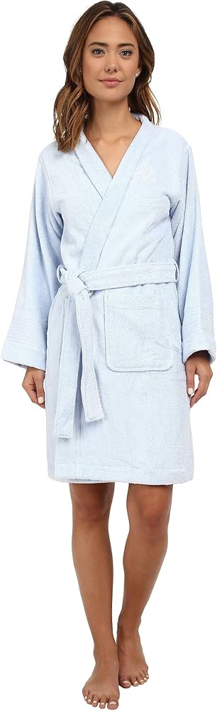 A classic, comfortable robe you can wear all year round. Long-sleeve robe is fabricated from a cotton woven terry. Banded collar and front. Embroidered logo at chest. Detachable self waist tie. Side belt loops. Front patch pockets. Decorative seaming encircles the cuffs. Falls at the knee. 100% cotton. Machine wash cold, tumble dry low.