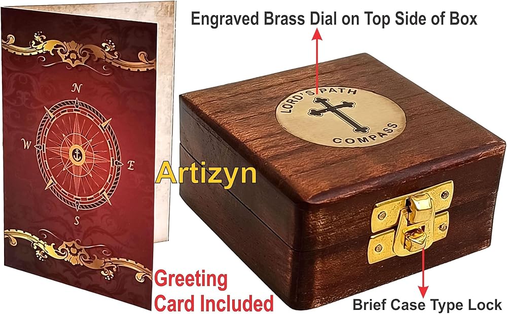 • Antique brass compass is corrosion resist, packed in a handmade brass LORD'S PATH COMPASS dial inalid Rosewood storage case. Under the tough glass cover is a beautiful, which will help you find and navigate your way to home.
