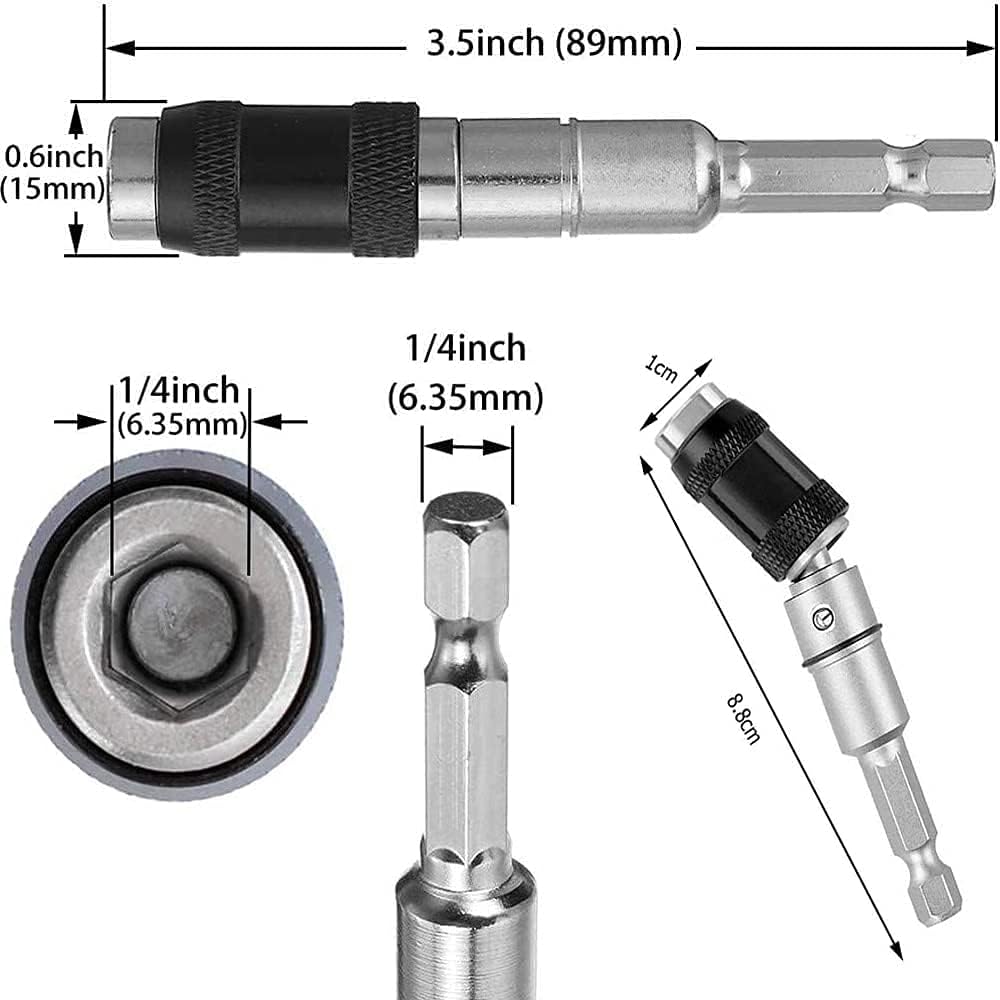 The set includes 2Pcs 20° Rotation Mode Adjustable Magnetic Screw Drill, 3pcs Magnetic Bit Holder Extensions, The perfect extensions tool for your daily use.