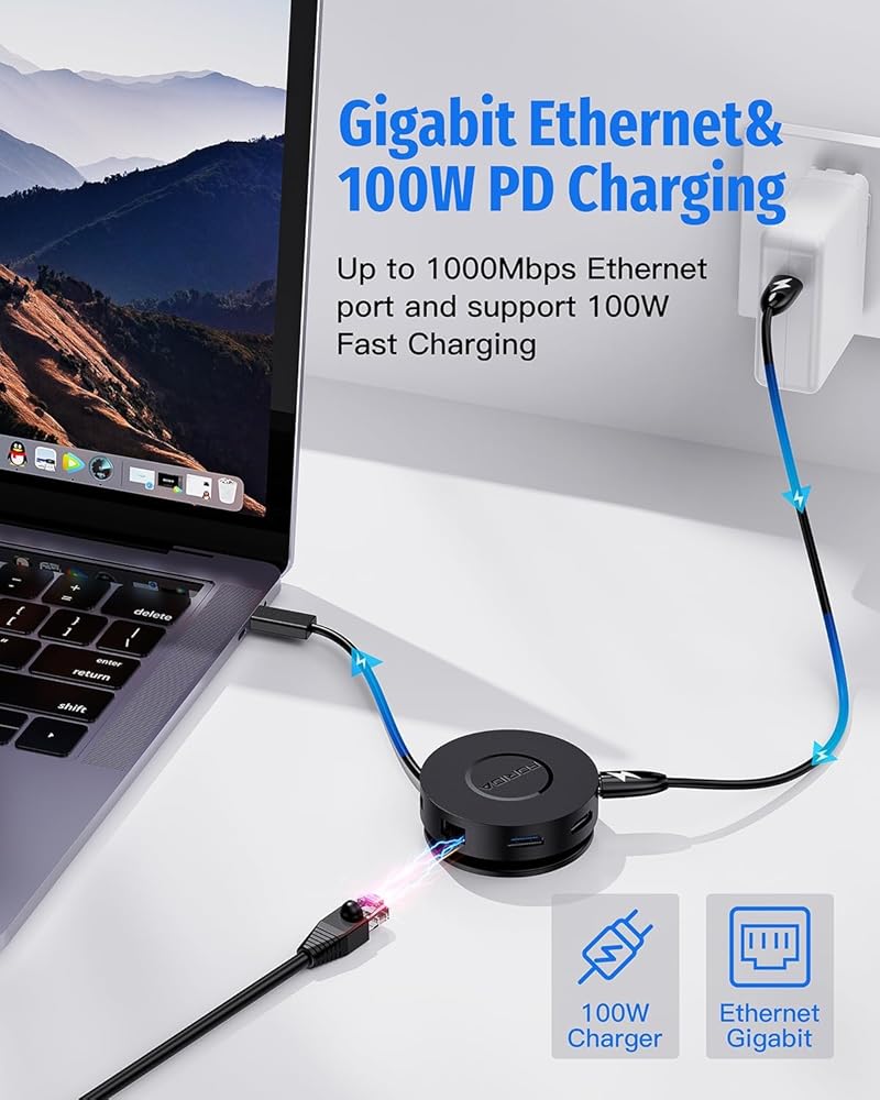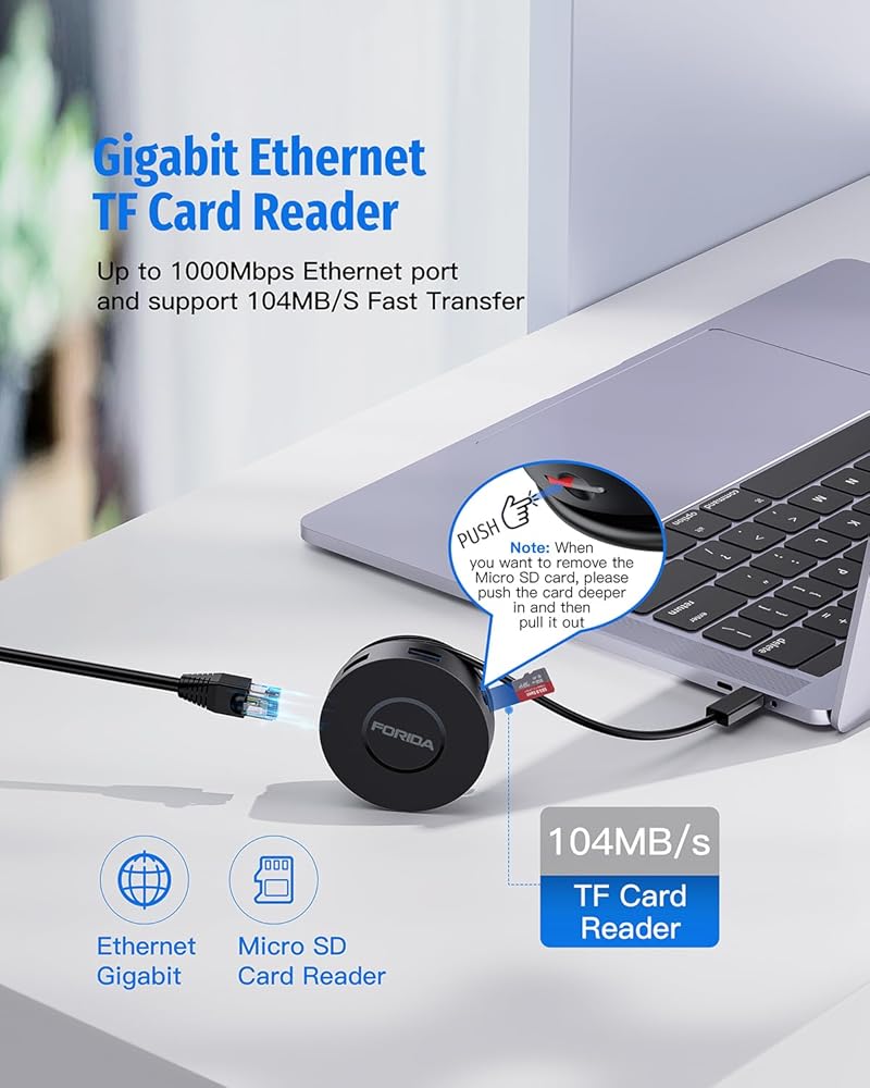 Stable 1000Mbps Ethernet- USB to ethernet adapter provides faster data transfers and better security than most Wi-Fi connections; Simply Plug the usb c hub to your laptop and plug in an ethernet cable, you will enjoy an ultra-fast surfing feeling. FORIDA usb docking station which is the Ideal solution for unstable Wi-Fi or a failed network card.