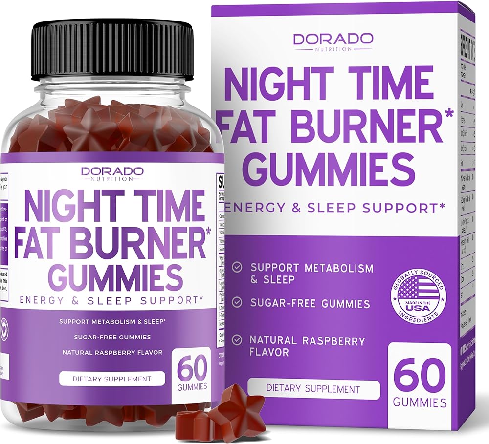 Night Time Fat Burner Gummies (60 Count) Weight Loss & Metabolism - Sugar-Free - Delicious Raspberry Flavored Melatonin Supplement Gummies - Vegan Safe - Third Party Tested - Made in USA
