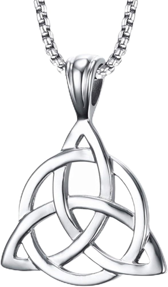 Celtic Knot Pendant Necklace Gold Silver Plated Unique Vintage Triangle Irish Good Luck Lightweight Triquetra Trinity Knot Geometric Chain Necklace for Women Teen Girls Religious Style Fashion Jewelry Gifts