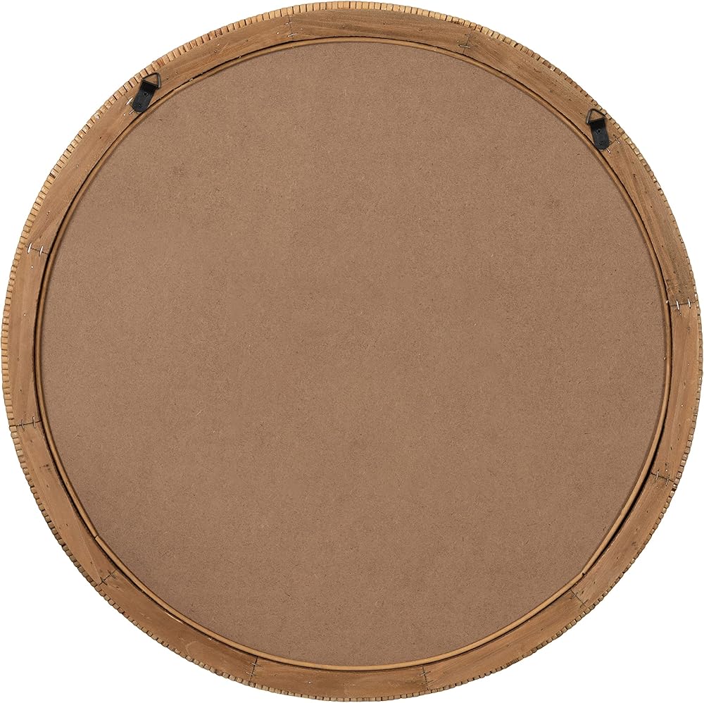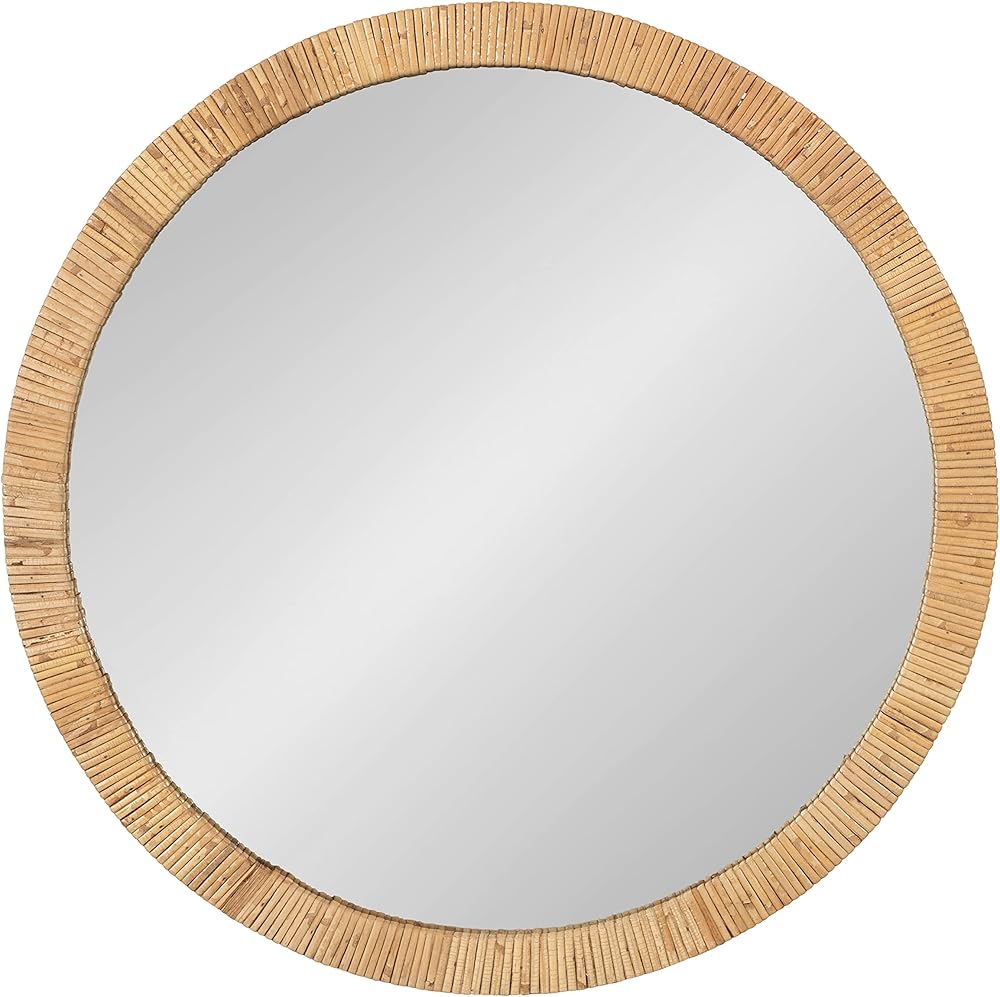 Kate and Laurel Rahfy Boho Round Rattan Mirror; 28 Inch Diameter; Natural Wood; Decorative Round Wood Mirror with Authentic Rattan Frame for Boho Wall Decor