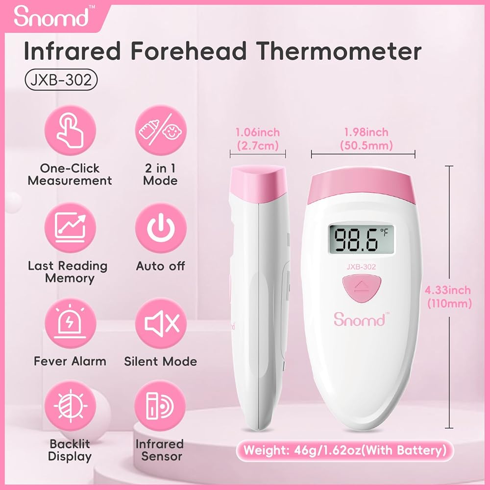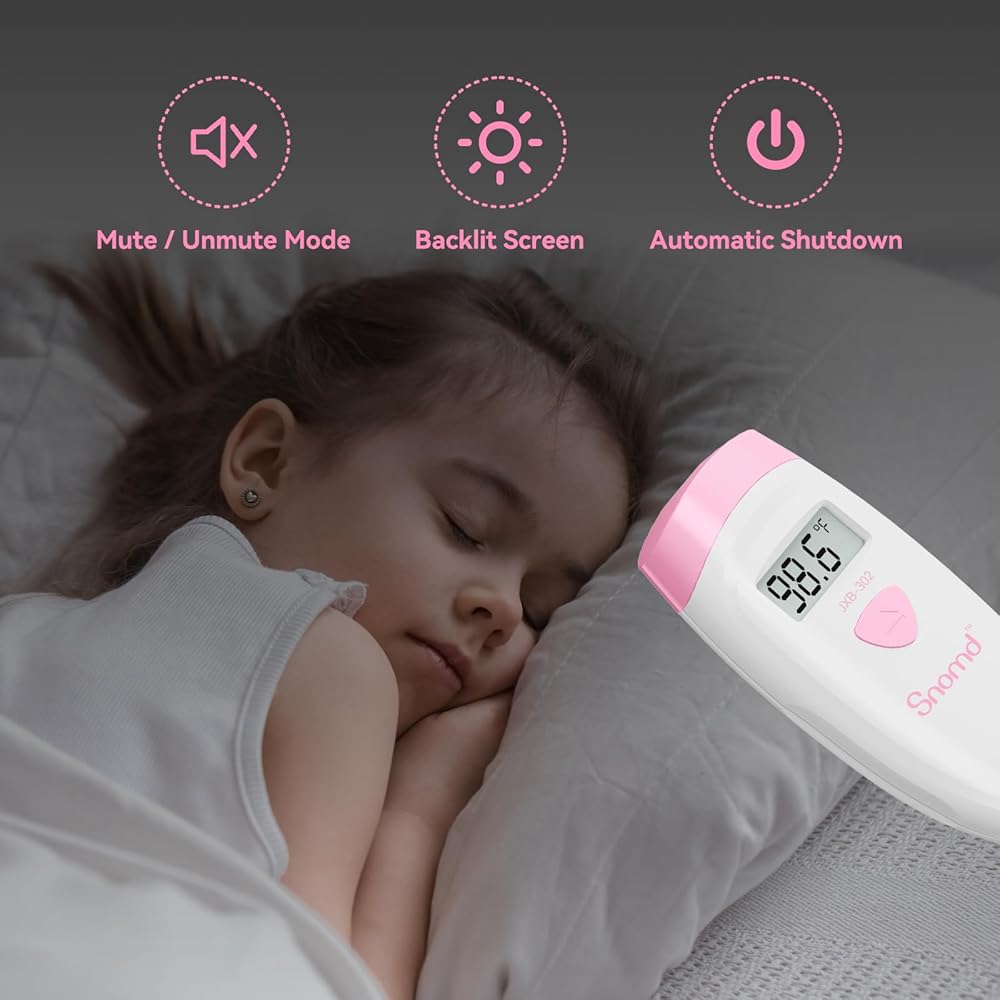 【Backlight LCD Screen】The 3-in-1 infrared thermometer backlight LCD screen allows you to read clearly in the dark. Press and hold the button for 2-6 seconds to switch to silent mode, making it convenient for you to track the baby's temperature changes after they fall asleep