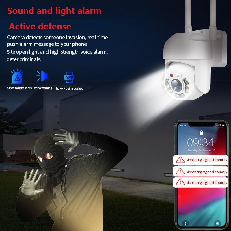 **3MP Color Night Vision& 360° View Pan/Tilt ** AOLANS Security cameras wireless outdoor can rotate its head 355° horizontally and 120° vertically. 3MP FHD 130° viewing wide-angle, the outdoor camera wireless allows you to remotely shoot and watch Clear pictures and videos ** Multi-user Share &2-way Audio **Outdoor cameras for home security Pre-set detection areas and interact online with children, guests, couriers, etc. Outdoor security cameras can custom and watch the excellent content of the camera together. medium for you to soothe your beloved pet ,also a defensive tool to scare off intrud,
