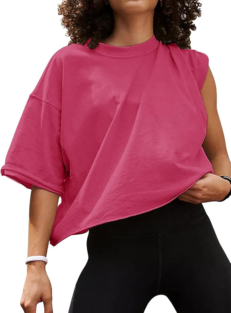 【STYLE】Oversized shirts for women, loose boxy shape design, looks slimmer and fashion, flattering on any body type. The dropped shoulders on this women's athletic tee, giving it a relaxed, casual look. Simple, trendy and stylish, a must-have plain tee for girls, goes with everything.