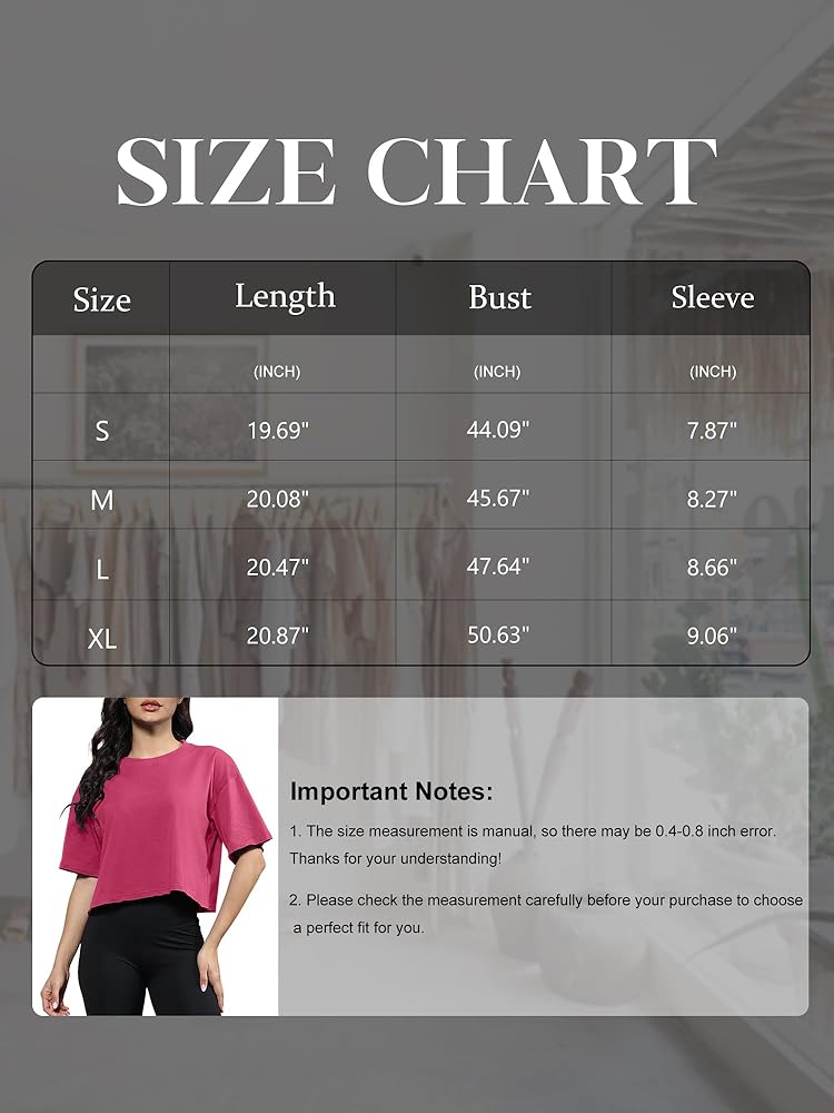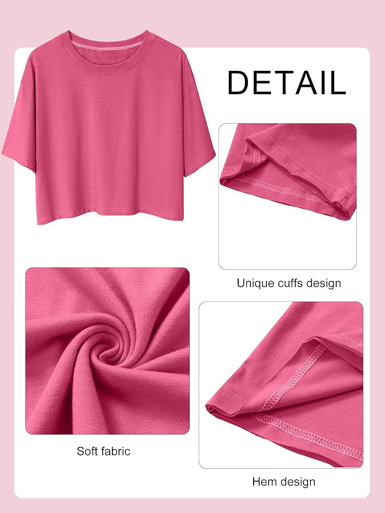 【MATERIAL】This womens loose fit crop top is made of 60% polyester, 35% cotton, and 5% spandex. Lightweight, breathable, has an ultra soft feeling touch and good drape, it is a good companion for summer travel. The causal basic top will definitely keep you cool in Summer.