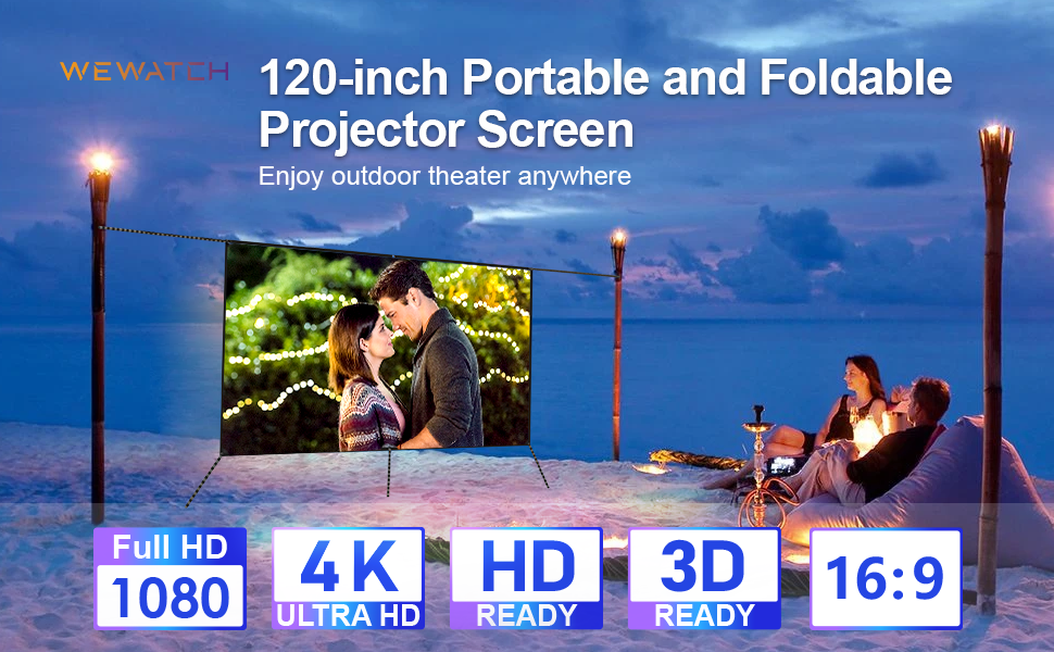 شاشة عرض رفض الضوء من WEWATCH، شاشة عرض أفلام بطبقة بصرية 120 بوصة، شاشة عرض أفلام رمادي فضي 16:9 عالية الدقة قابلة للطي ومضادة للتجاعيد ومحمولة للمسرح المنزلي والخارجي والداخلي