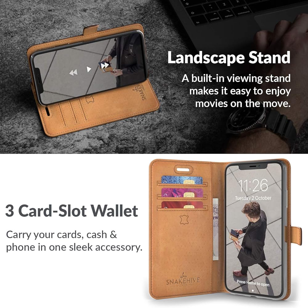SNAKEHIVE 12 MONTH WARRANTY ✔: A flip case that's built to last - includes Snakehive's 12 month warranty & 30 day money-back guarantee with this leather wallet case with card holder