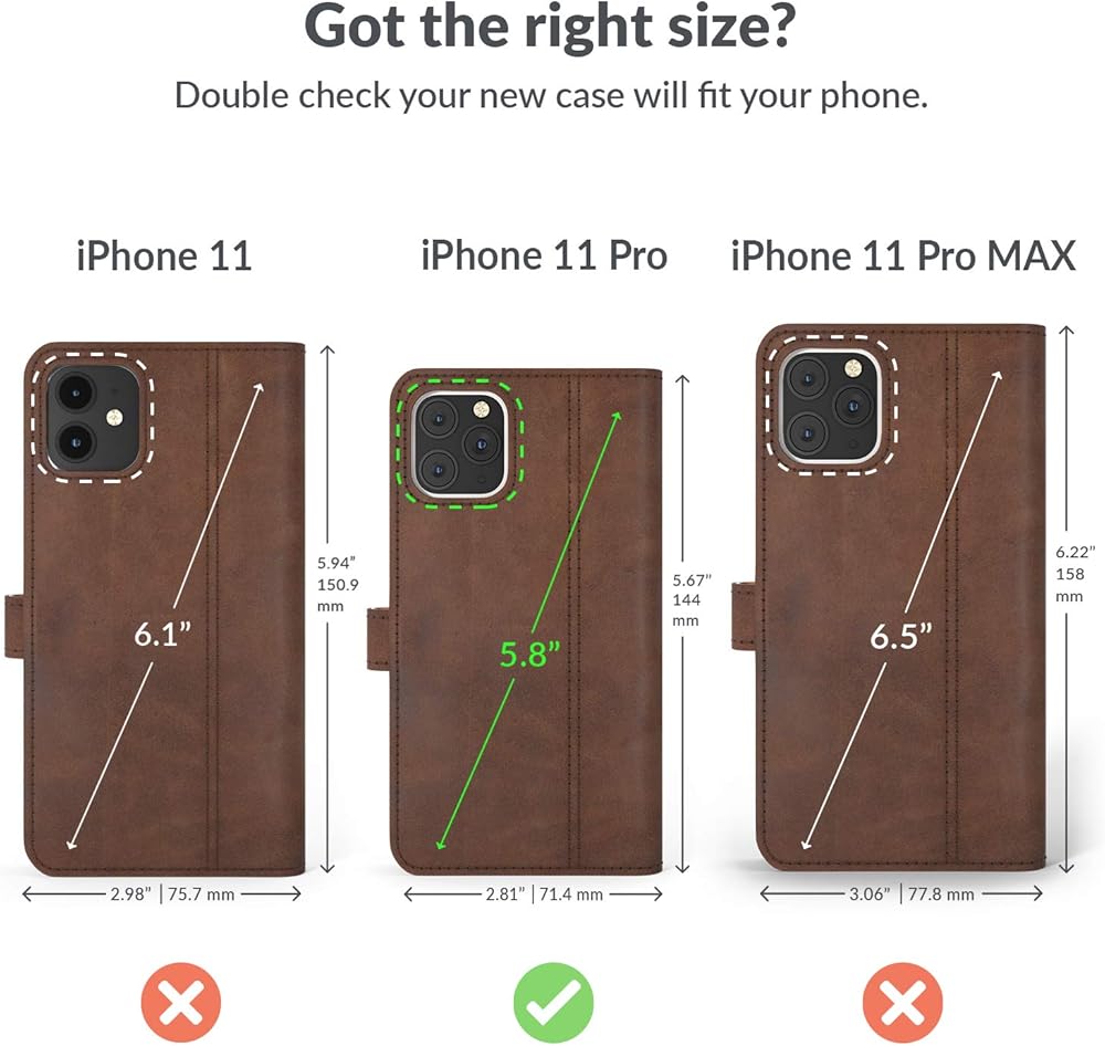 FITS iPHONE 11 PRO ONLY ✔: Custom-made leather wallet phone case for the Apple iPhone 11 Pro 5.8" screen. Double check your model first