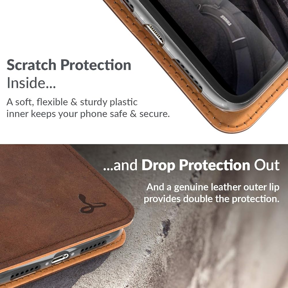 DROP & SCRATCH PROTECTION ✔: A classy leather phone cover & flexible plastic inner keeps your phone both safe & stylish throughout your day