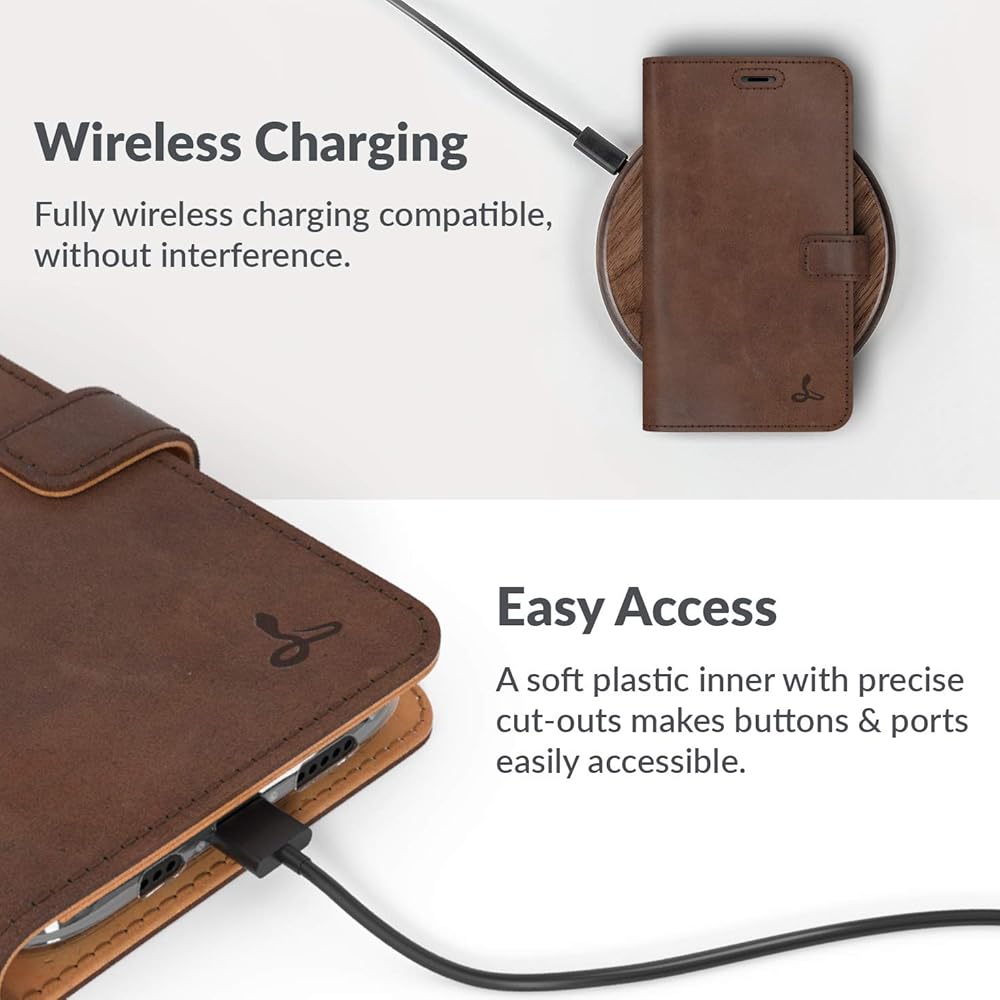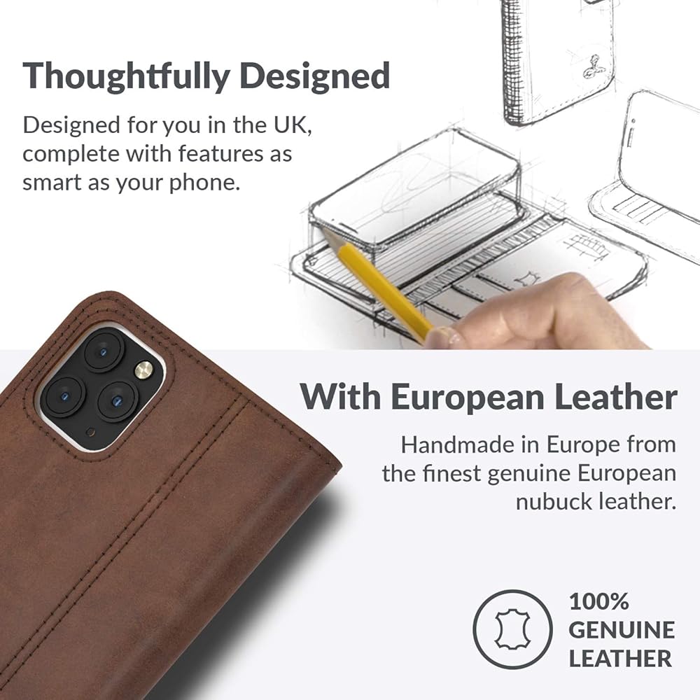 GENUINE LEATHER CASE HANDMADE IN EUROPE ✔: A leather wallet case made with European Nubuck leather for a soft, suede-like finish & elegant patina unique to every leather cover