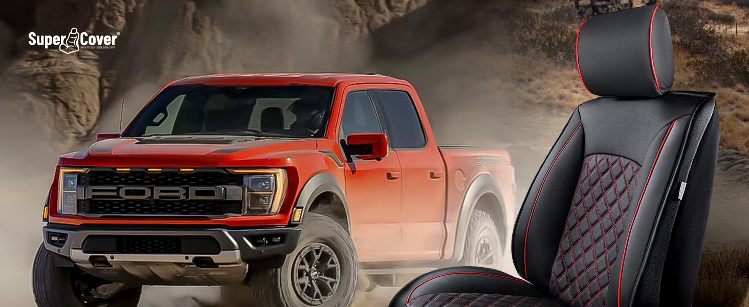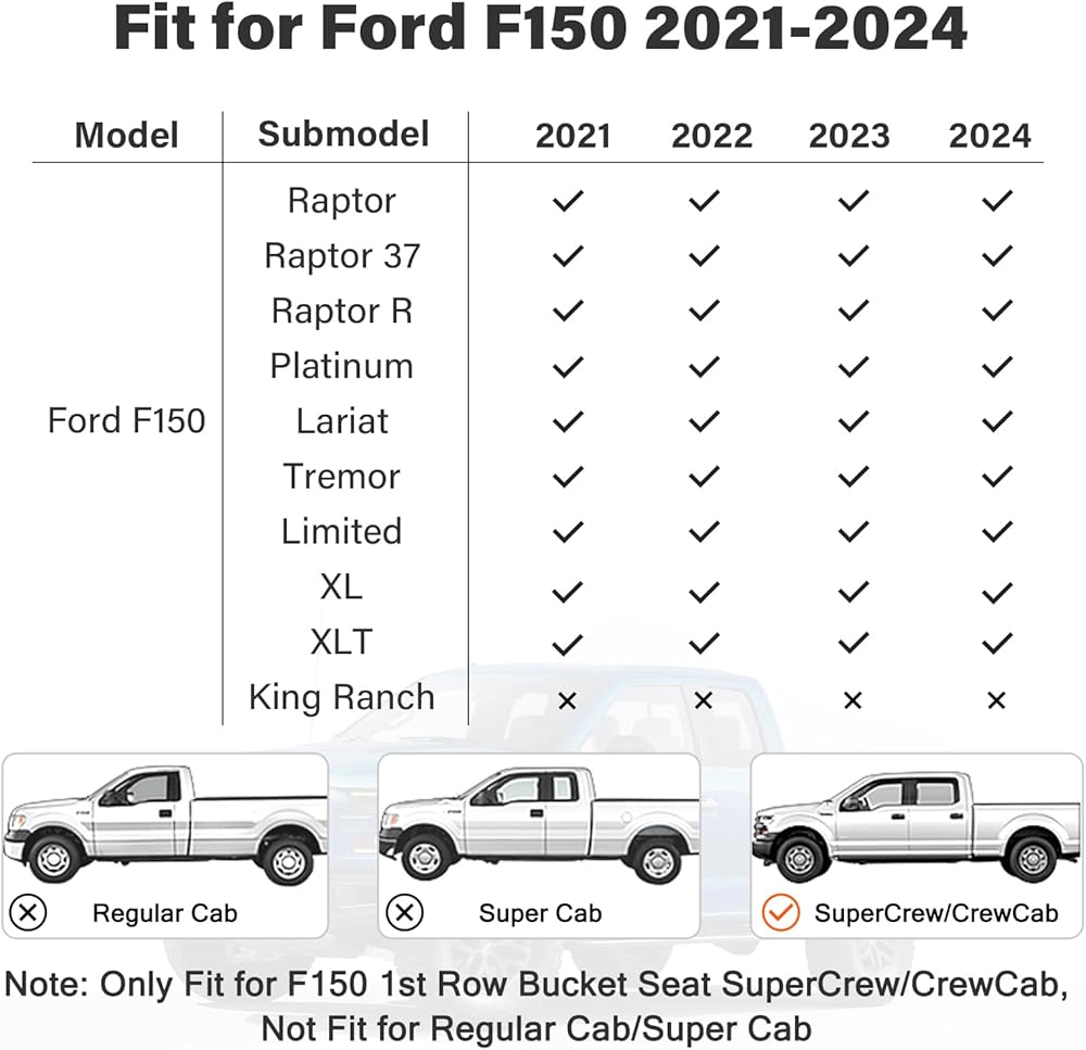 Supercover لأغطية مقاعد Ford F150 2024 2023 2022 2021، أغطية مقاعد شاحنة جلدية مقاومة للماء تناسب مجموعة كاملة لملحقات F150 2021-2024، فقط لمقعد دلو F150 الصف الأول SuperCrew/CrewCab