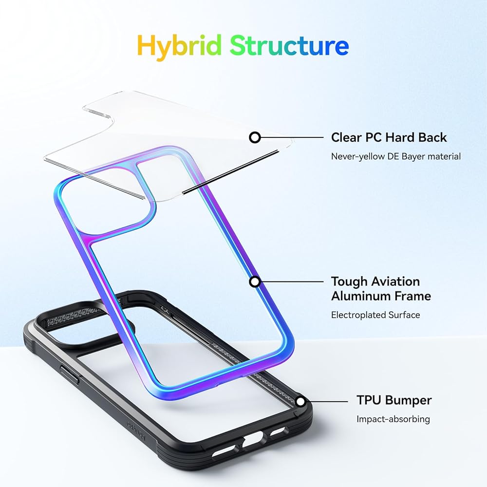 【Aluminum Alloy Frame & Clear Back】 The upgraded aluminum frame has an exclusive electroplating process, you can see stunning Color-Changing effect from different angles. And each case has a different color that makes it unique. Allows you to show off your personality, stand out from the crowd.