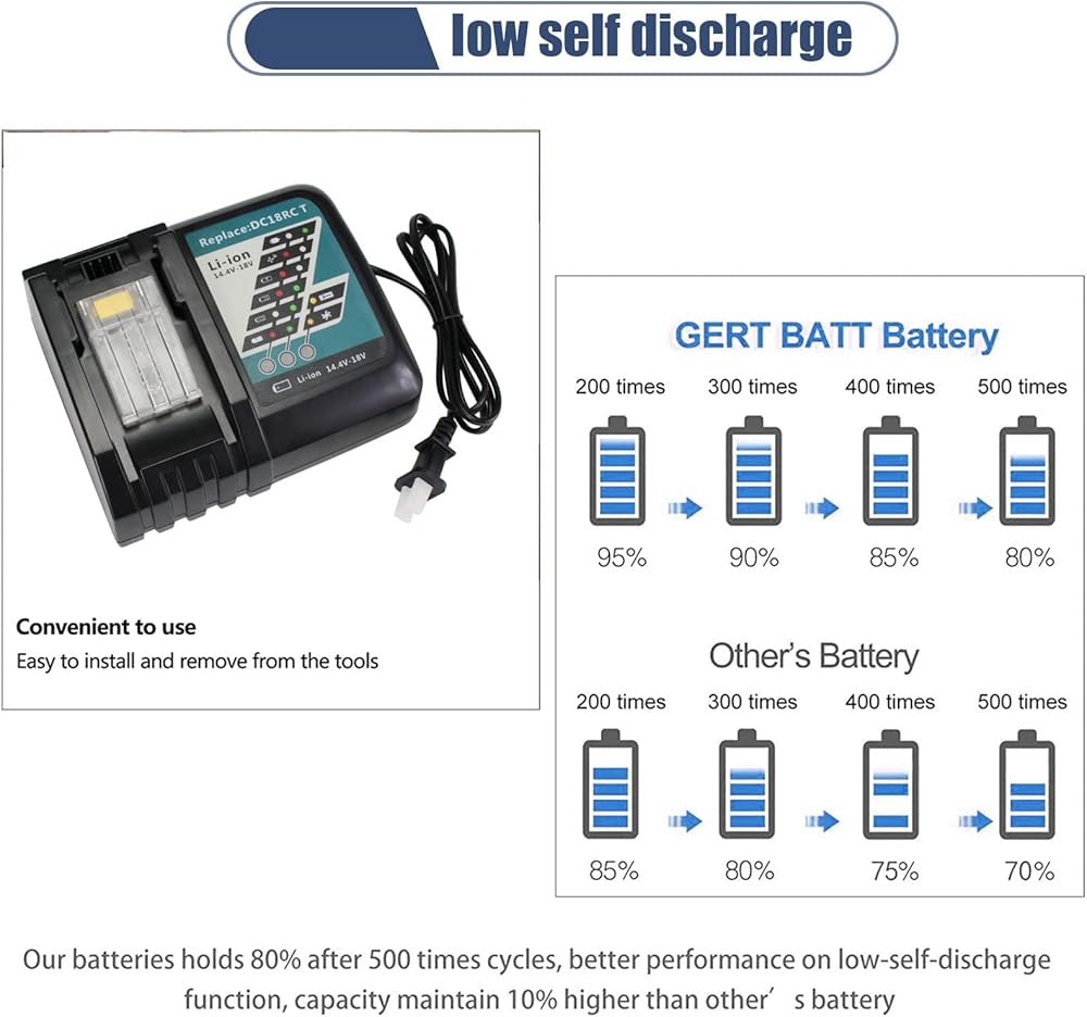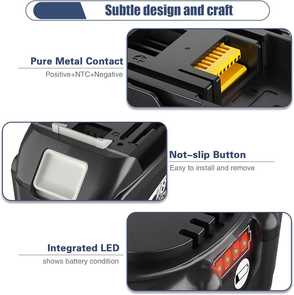 【Perfect Compatibility】Compatible with Makita 18V BL1860, BL1850B, BL1850, BL1840B, BL1840, BL1830B, BL1830, BL1820, BL1815, BL1825, BL1835, BL1845, 194205-3, 194309-1, 194204-5, 196399-0, 196673- 6, lxt-400 battery and work with DC18RD DC18SD chargers