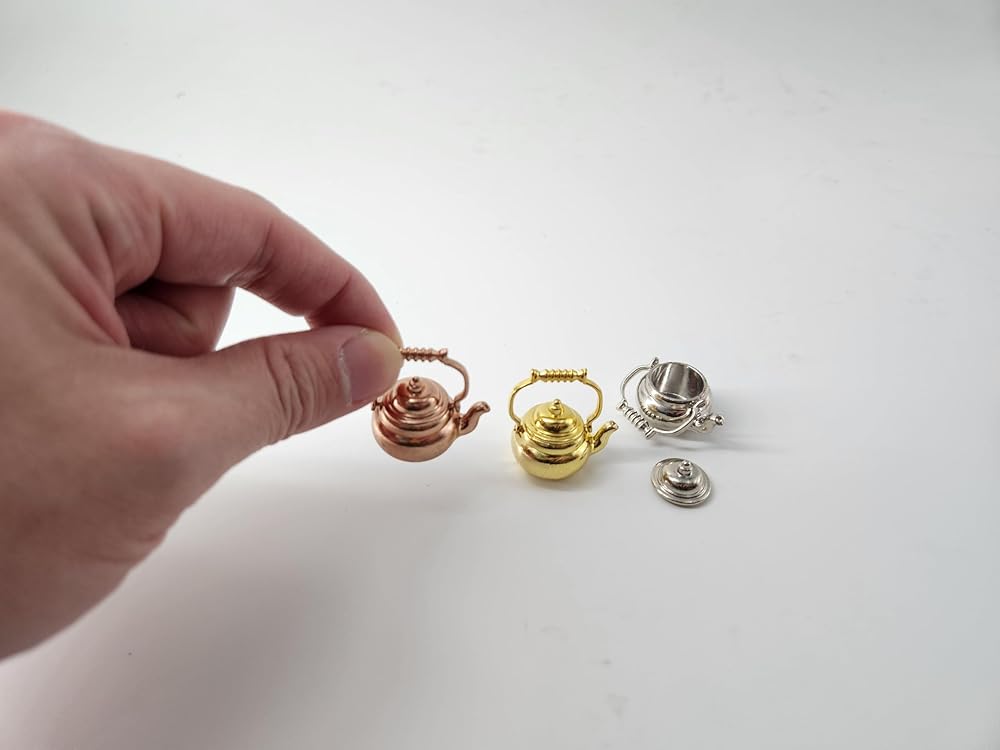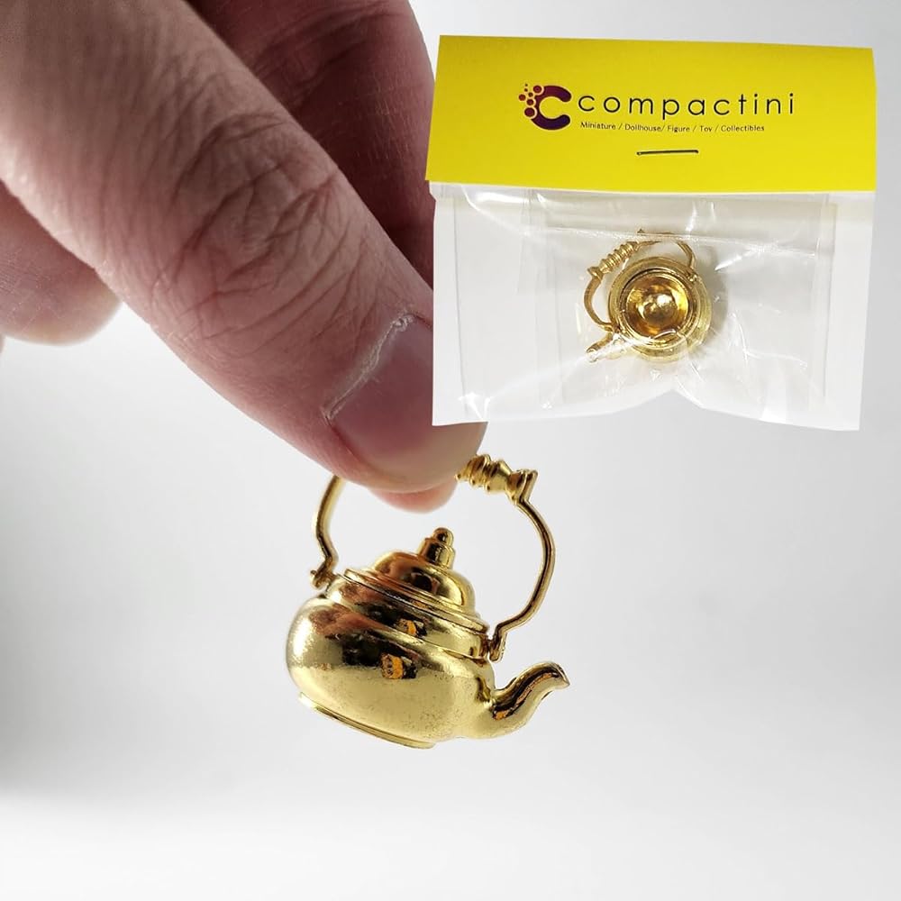 Miniature Set 1:12 Scale Models Dollhouse Accessory Coffee Pot Cup Beverage Bottle Kettle (Alloy Kettle Gold)