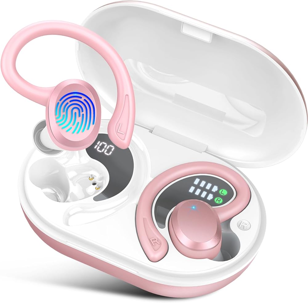 Rulefiss Wireless Earbud Bluetooth Headphone Sport, Bluetooth 5.3 Earbud HiFi Stereo Over Ear Buds, Wireless Earphone with Earhooks, IP7 Waterproof Headset for Workout/Running/Gym