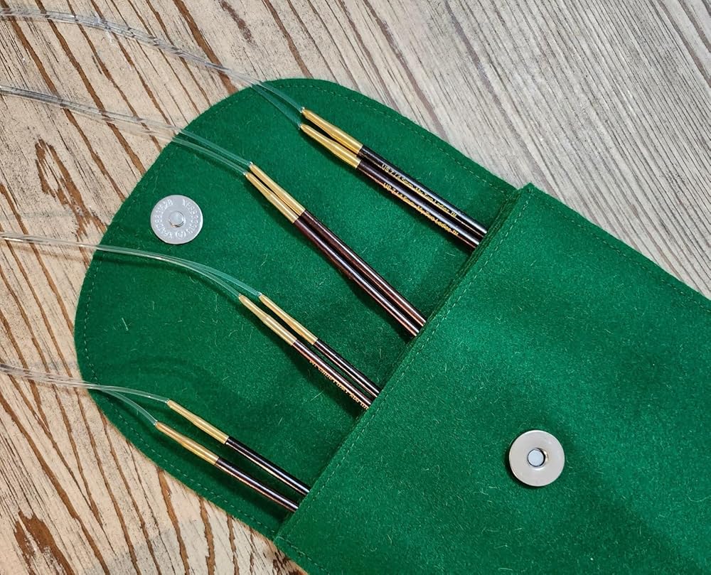 Original design and Handcrafted case by @Haven Handmade especially for My Two Ladies “adjustable needles” with 4 large pockets that can easily hold several pair in each pocket. High quality thick protective felt with magnetic closure. Additional 3 smaller pockets for your notions. Soft and portable.