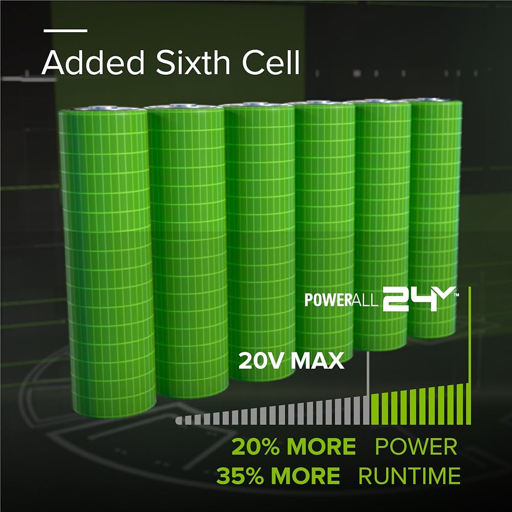 The Greenworks 24V lithium-ion platform powers over 50 indoor and outdoor products, including lawn mowers, blowers, string trimmers, chainsaws, power tools, and more! The 24V lithium-ion battery provides 20% more power and 35% more run-time, and delivers fade-free power with no memory loss after charging. The outdoor power equipment allows you to tackle up to 1/4 acre with the available 1.5Ah, 2Ah, 4Ah, and 5Ah batteries. USB ports are integrated into the BAG711, BAG708, BAG709, BAG710 batteries, making it a portable charger for phones, tablets, and other compatible electronic accessories.