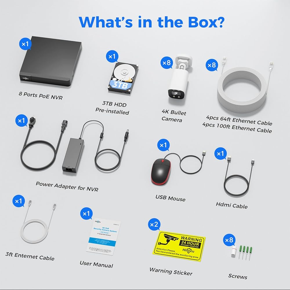 [4K HD+Color Night Vision] Hiseeu PoE Security Camera System, Home Security System w/ 8 MP PoE Cameras, 121°Wide Angle, Human Vehicle Detect, 2 Way Audio, 16ch NVR for Home Surveillance Indoor&Outdoor
