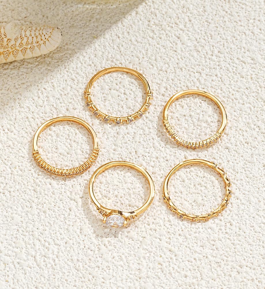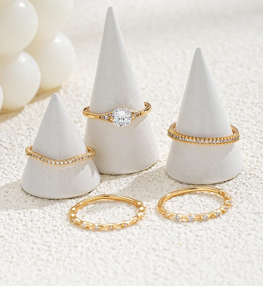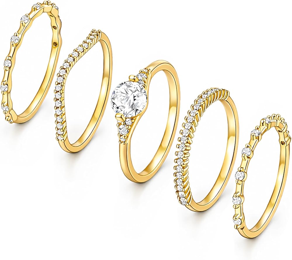 💗 Gold Rings Non Tarnish✧✦ These gold stacked ring set are made of high-quality brass, hand-inlaid with zircon and plated with 14K gold. Hypoallergenic, high polishing, non tarnish, not easy to break or fading.