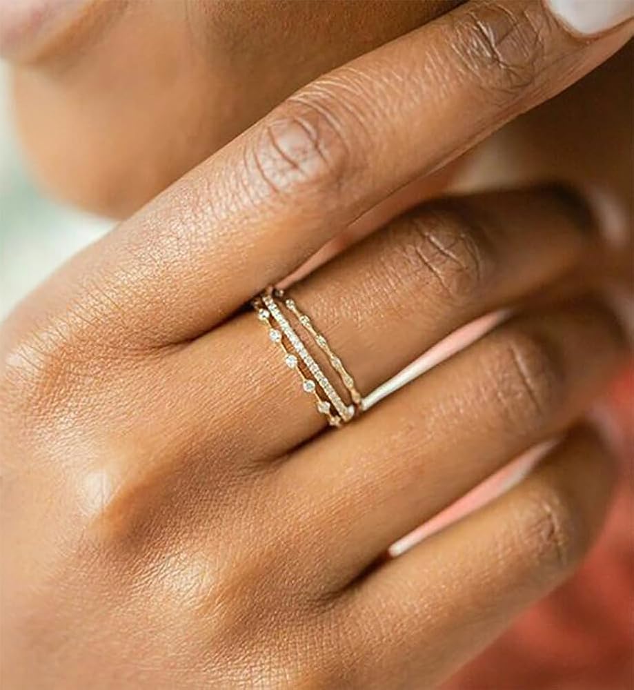 💗 Perfact Stackable Rings✧✦ Unique gold plated rings for women comes in a delicate bag. These women's fake diamond ring are suitable for various occasions, such as weddings, anniversaries, engagements, or as a fashion statement. These gold wedding bands are also perfect for gift-giving. It will be a perfect gift for your mother, sister, loved one, wife, daughter on Christmas day, Birthday party, a Thanksgiving Day, Valentine's Day and so on.