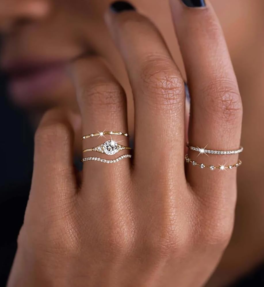 💍 Diamond Rings for Women✧✦ Each set of cz rings contains unique diamond elements, which are very shiny and fashion-designed. These rings can be worn separately or stacked. Elegant and stylish designs simple yet timeless. Perfect match for engagement ring or wedding band ring, or just as a simple ring, stacking rings, thumb ring, thin rings, knuckle rings, enjoy the aesthetic rings for daily outfit.
