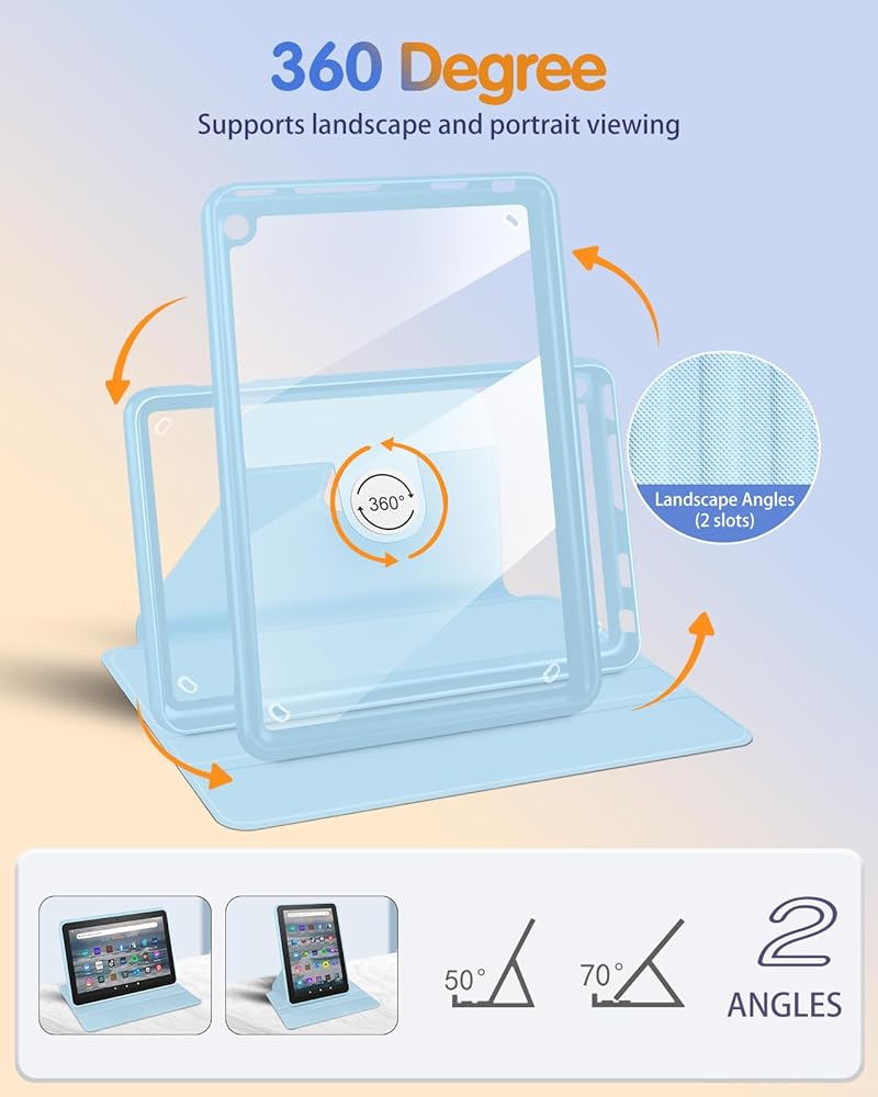 360° Rotating Stand: This for Kindle Fire 7 case with an functional rotating stand design, supporting your devices to switch between landscape and portrait orientations for all-around viewing and use.
