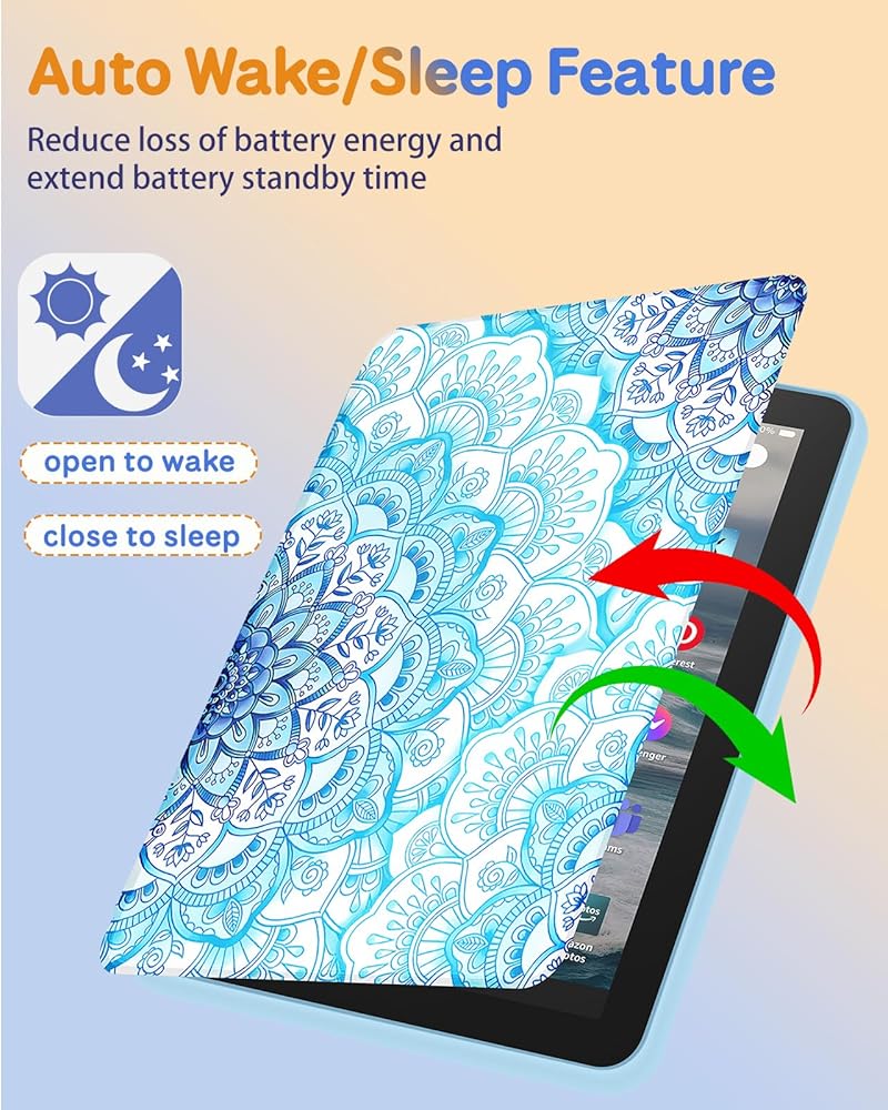 Auto Sleep/Wake: This for Amazon Fire 7 tablet case with the function of auto sleep/wake, extending the standby time. No waste of power and extended standby time for your e-readers.